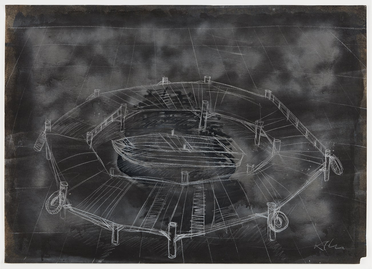 Unique watercolor and pastel drawing, on wove paper, framed.