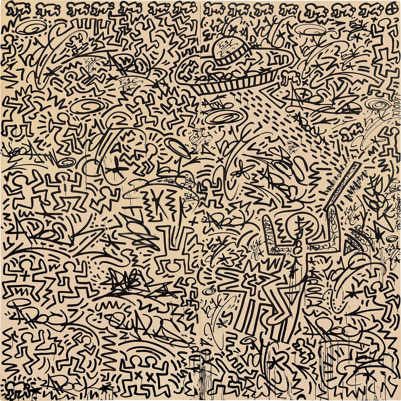 signed and dated "AUG. 1 - 1982 ⊕ K. Haring Angel Ortiz" on the reverse