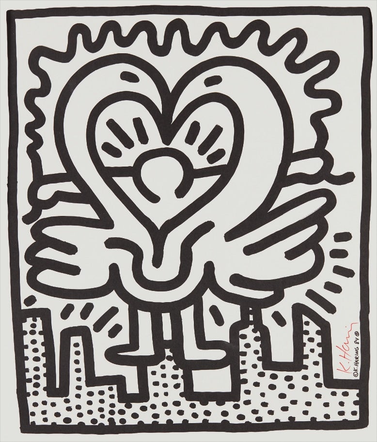 Throughout his tragically brief career, Haring refined a visual language of symbols, which he called icons, the origins of which began with his trademark linear style scrawled in white chalk on the black unused advertising spaces in subway stations. Haring developed and disseminated these icons far and wide, in his vibrant and dynamic style, from public murals and paintings to t-shirts and Swatch watches. His art bridged high and low, erasing the distinctions between rarefied art, political activism and popular culture.