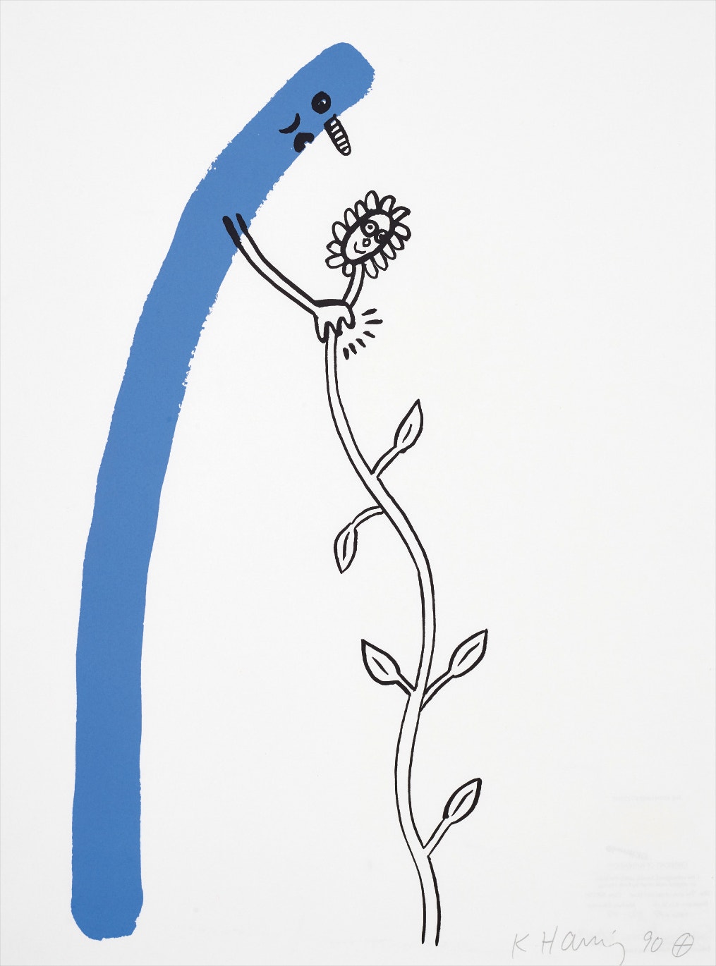 With printed signature and date in silver on the front, signed and dated '6/14/90' in pencil by Julia Gruen (Executor for the Keith Haring Estate) and numbered 'AP - 7/10 - XII' in pencil on a printed Certificate of Authenticity on the reverse (one of 10 artist's proofs in Roman numerals, the edition was 90), published by the Keith Haring Estate, New York, framed.
