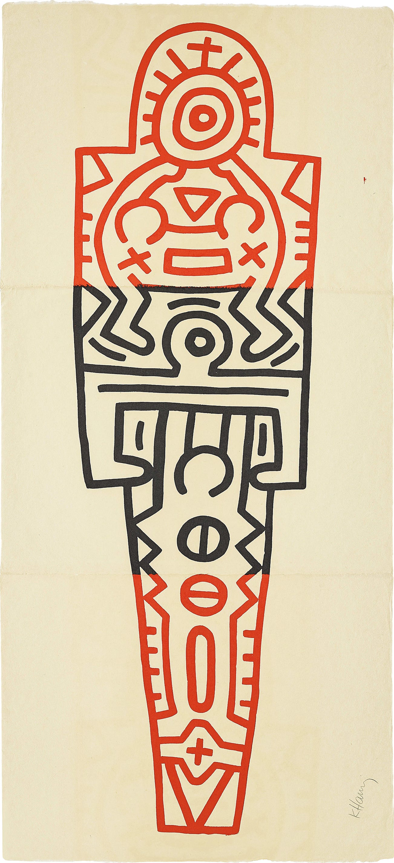 Throughout his tragically brief career, Haring refined a visual language of symbols, which he called icons, the origins of which began with his trademark linear style scrawled in white chalk on the black unused advertising spaces in subway stations. Haring developed and disseminated these icons far and wide, in his vibrant and dynamic style, from public murals and paintings to t-shirts and Swatch watches. His art bridged high and low, erasing the distinctions between rarefied art, political activism and popular culture.