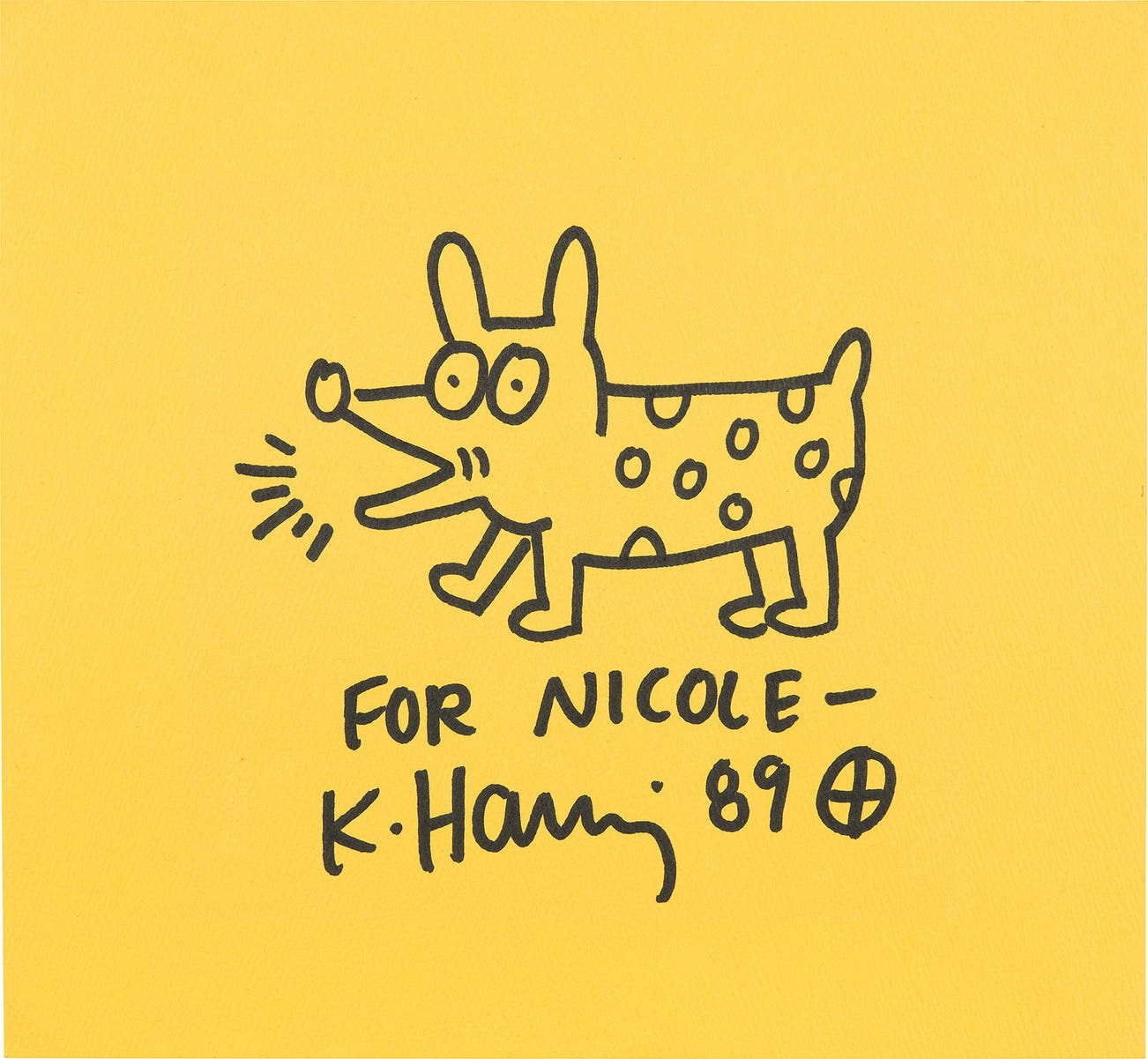 signed, dedicated and dated "FOR NICOLE - K. Haring '89" lower center