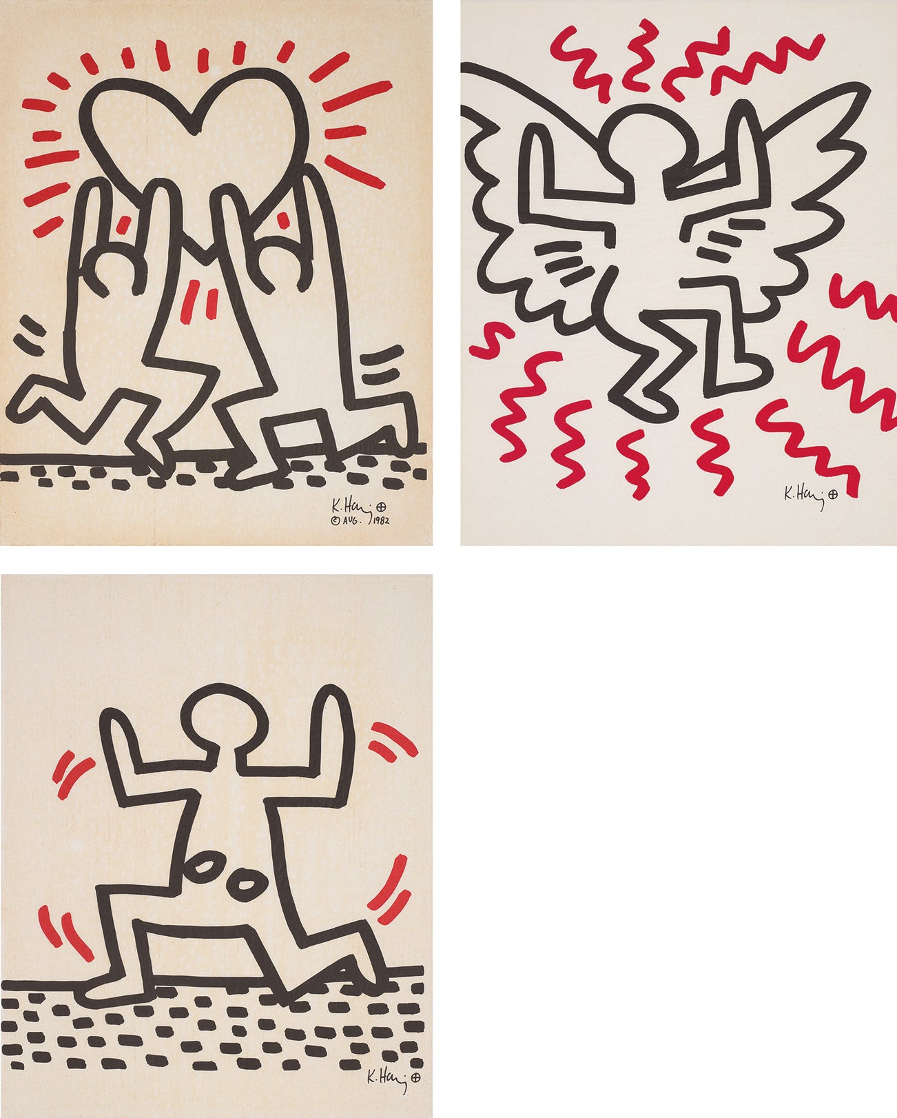 Throughout his tragically brief career, Haring refined a visual language of symbols, which he called icons, the origins of which began with his trademark linear style scrawled in white chalk on the black unused advertising spaces in subway stations. Haring developed and disseminated these icons far and wide, in his vibrant and dynamic style, from public murals and paintings to t-shirts and Swatch watches. His art bridged high and low, erasing the distinctions between rarefied art, political activism and popular culture.
