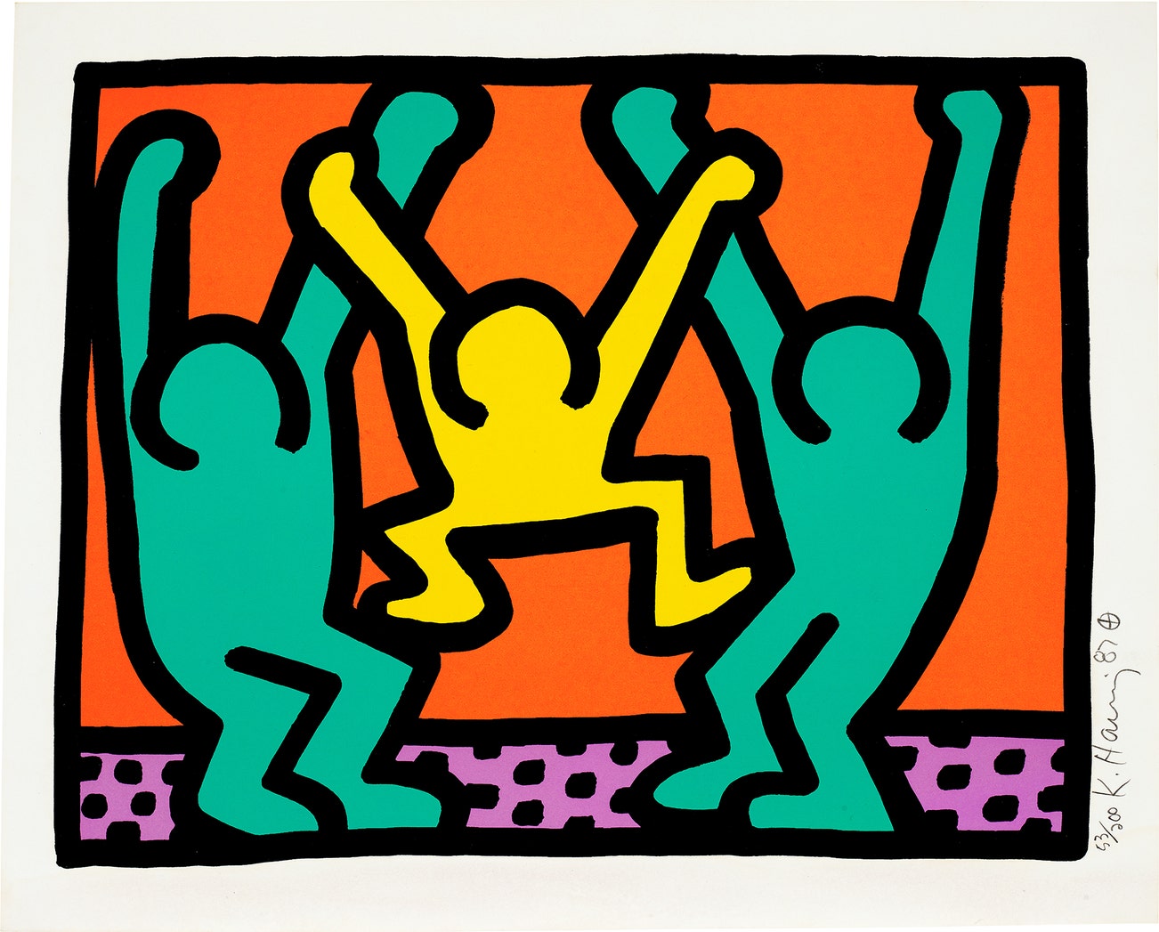 American | B. 1958 D. 1990Haring's art and life typified youthful exuberance and fearlessness. While seemingly playful and transparent, Haring dealt with weighty subjects such as death, sex and war, enabling subtle and multiple interpretations.