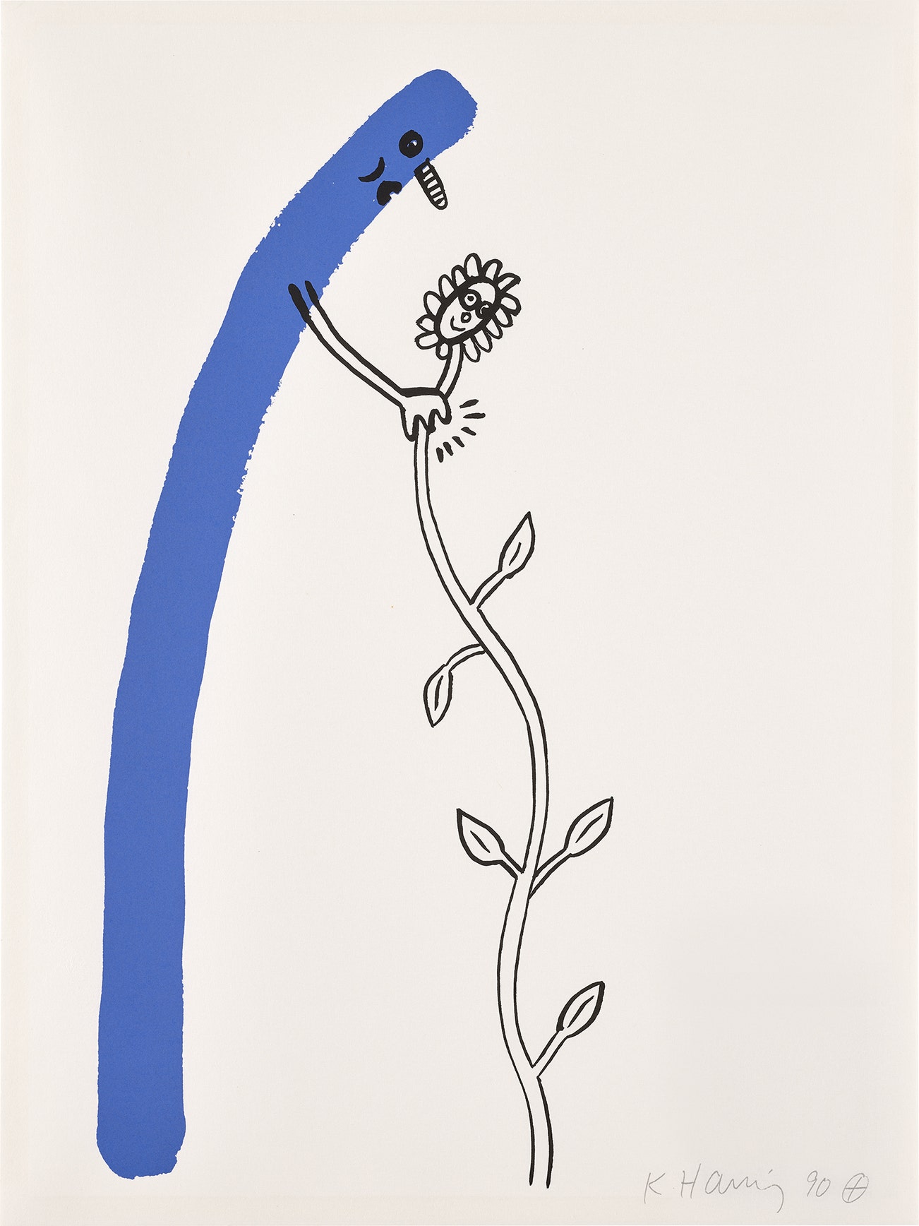 With printed signature and date in silver on the front, signed and dated '6/14/90' in pencil by Julia Gruen (Executor for the Keith Haring Estate) and numbered '64/90 - XII' in pencil on a printed Certificate of Authenticity on the reverse (there were also 10 artist's proofs in Roman numerals), published by the Keith Haring Estate, New York, framed.