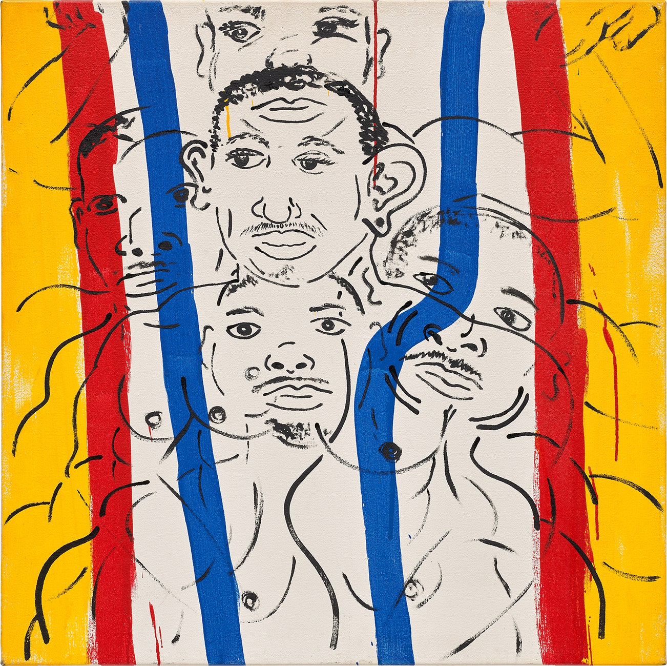 signed, titled and dated "RED-YELLOW-BLUE #16 (PORTRAIT OF ADOLPHO) © K. Haring JAN 12 87 ⨁" on the overlap