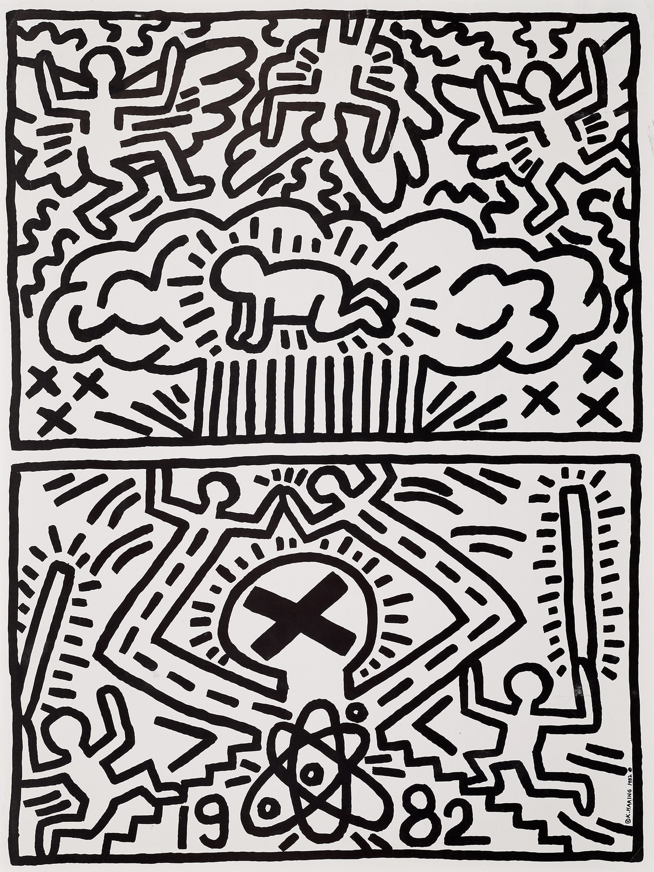 American | B. 1958 D. 1990Haring's art and life typified youthful exuberance and fearlessness. While seemingly playful and transparent, Haring dealt with weighty subjects such as death, sex and war, enabling subtle and multiple interpretations.