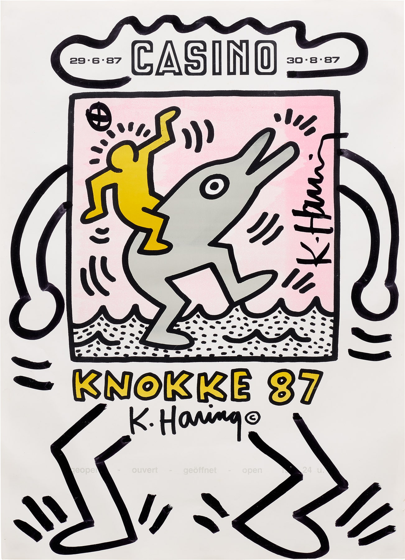 Throughout his tragically brief career, Haring refined a visual language of symbols, which he called icons, the origins of which began with his trademark linear style scrawled in white chalk on the black unused advertising spaces in subway stations. Haring developed and disseminated these icons far and wide, in his vibrant and dynamic style, from public murals and paintings to t-shirts and Swatch watches. His art bridged high and low, erasing the distinctions between rarefied art, political activism and popular culture.