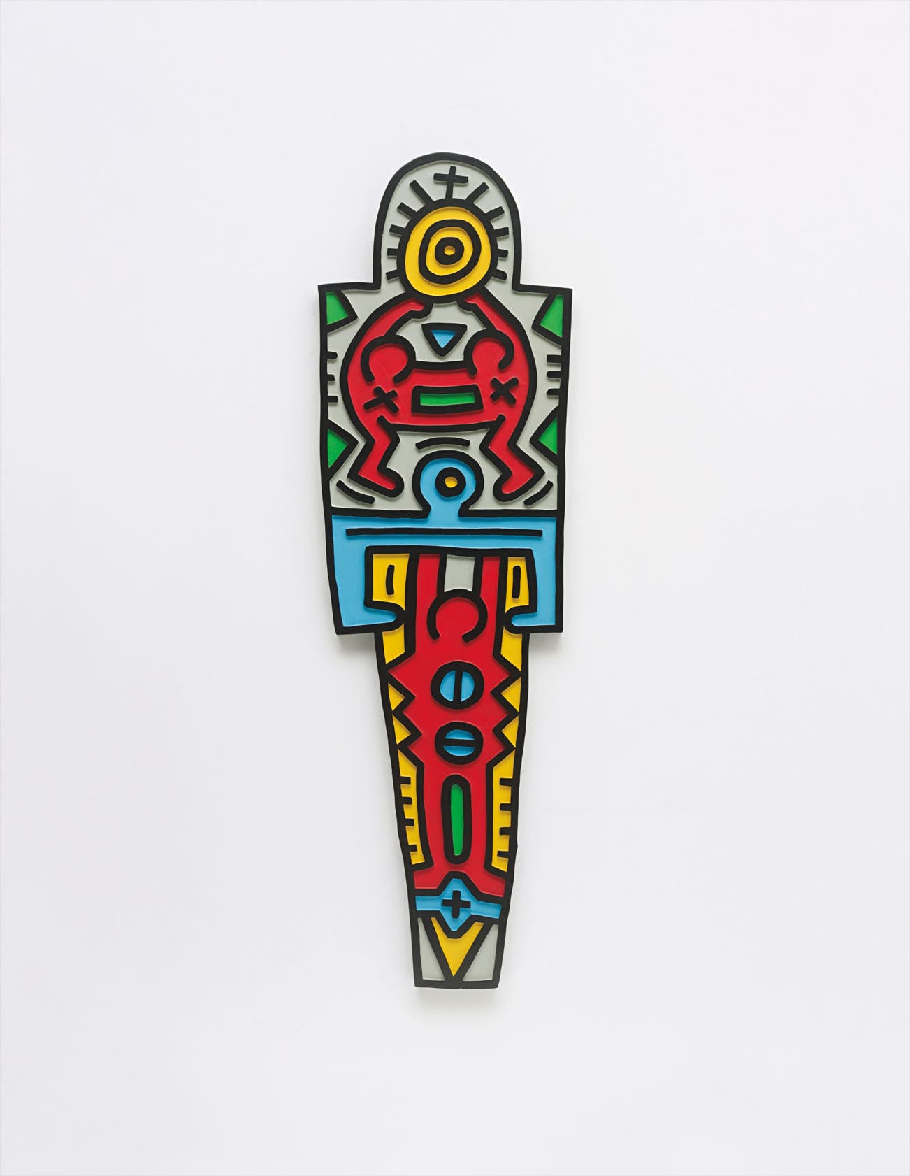 Throughout his tragically brief career, Haring refined a visual language of symbols, which he called icons, the origins of which began with his trademark linear style scrawled in white chalk on the black unused advertising spaces in subway stations. Haring developed and disseminated these icons far and wide, in his vibrant and dynamic style, from public murals and paintings to t-shirts and Swatch watches. His art bridged high and low, erasing the distinctions between rarefied art, political activism and popular culture.