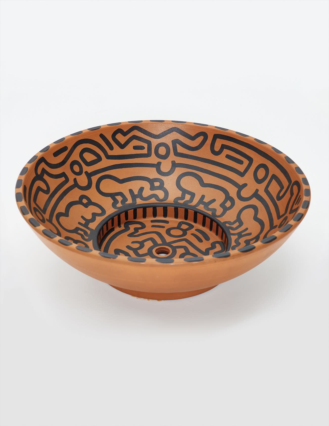 Throughout his tragically brief career, Haring refined a visual language of symbols, which he called icons, the origins of which began with his trademark linear style scrawled in white chalk on the black unused advertising spaces in subway stations. Haring developed and disseminated these icons far and wide, in his vibrant and dynamic style, from public murals and paintings to t-shirts and Swatch watches. His art bridged high and low, erasing the distinctions between rarefied art, political activism and popular culture.