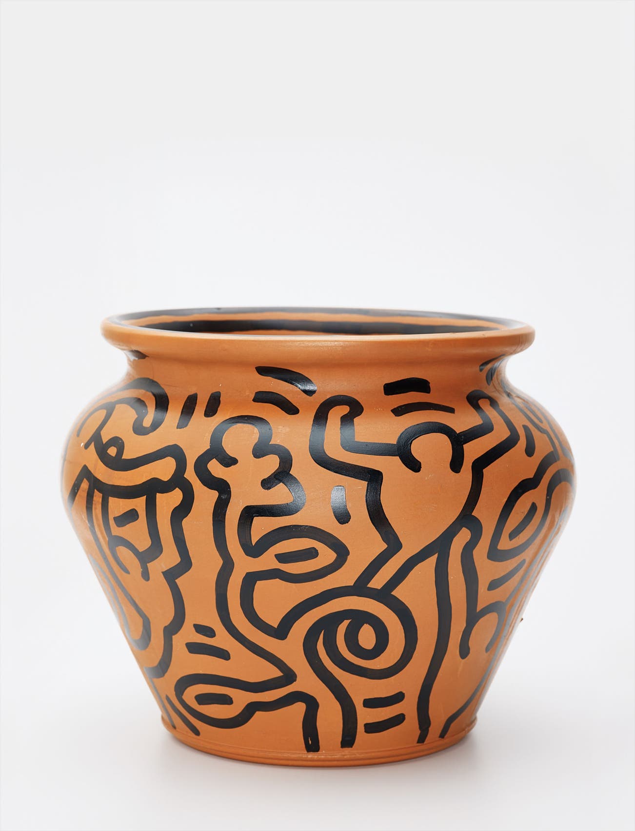 Throughout his tragically brief career, Haring refined a visual language of symbols, which he called icons, the origins of which began with his trademark linear style scrawled in white chalk on the black unused advertising spaces in subway stations. Haring developed and disseminated these icons far and wide, in his vibrant and dynamic style, from public murals and paintings to t-shirts and Swatch watches. His art bridged high and low, erasing the distinctions between rarefied art, political activism and popular culture.