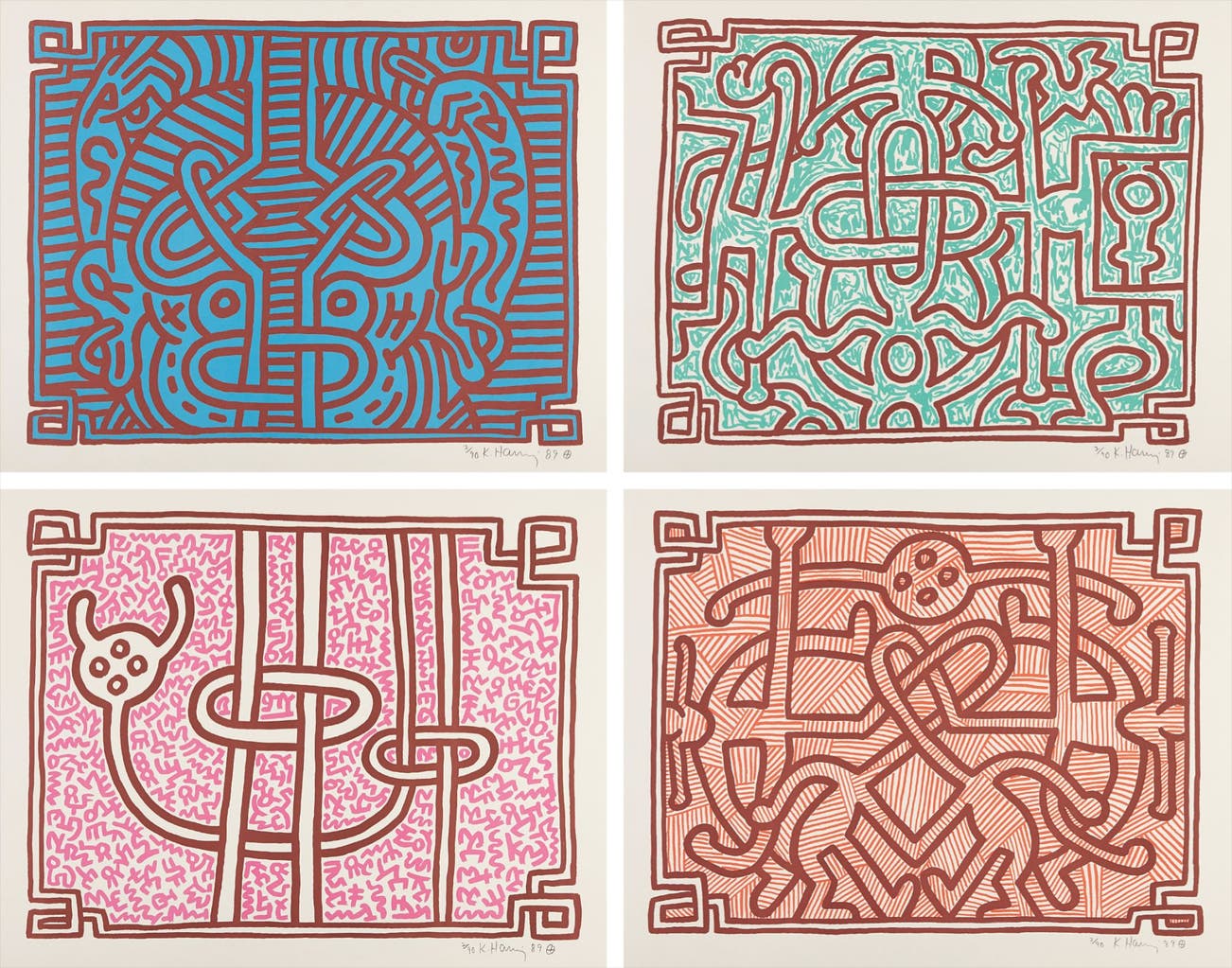 all signed, dated `89' and numbered 2/90 in pencil on each page and the colophon, annotated `For Lisa with love - xxx Keith 1989' in pencil on the title page (there were also 15 artist's proofs), published by Editions F.B., Paris, all contained in the original cardboard portfolio.