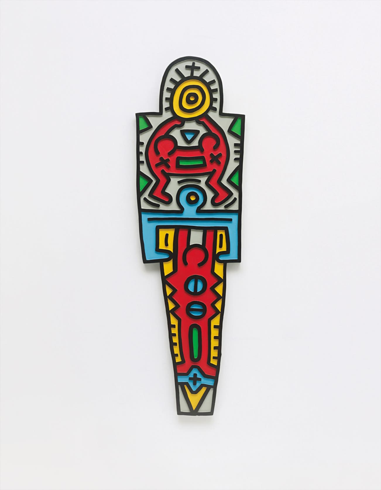 American | B. 1958 D. 1990Haring's art and life typified youthful exuberance and fearlessness. While seemingly playful and transparent, Haring dealt with weighty subjects such as death, sex and war, enabling subtle and multiple interpretations.