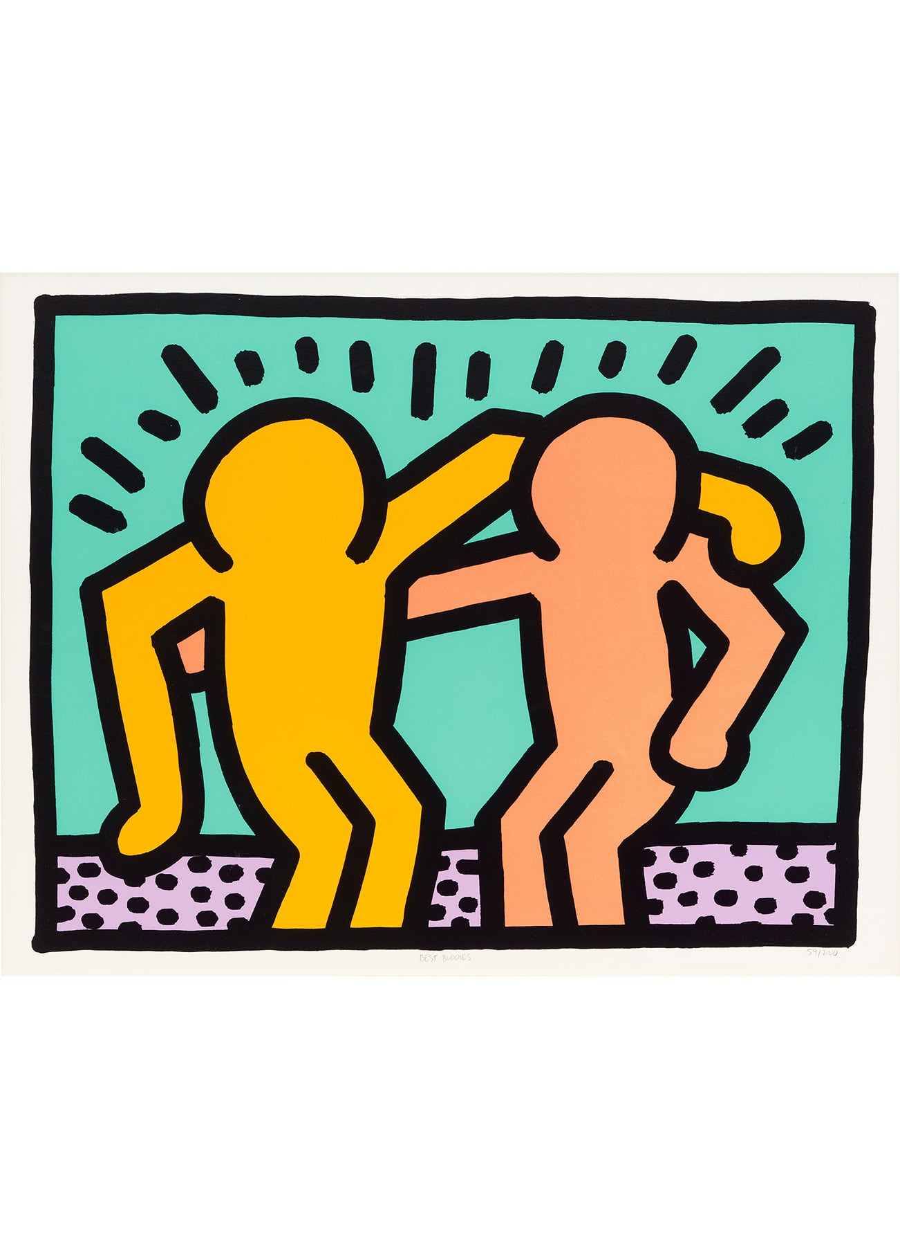 titled "BEST BUDDIES" along bottom edge; numbered '59/200' lower right; further numbered '59/200' on a certificate of authenticity issued by the Keith Haring Estate on the reverse