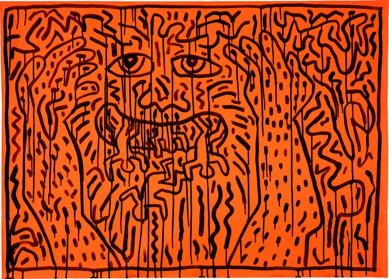 signed, inscribed, titled and dated "K. Haring MAR.7-83 TOKYO ⨁" on the reverse