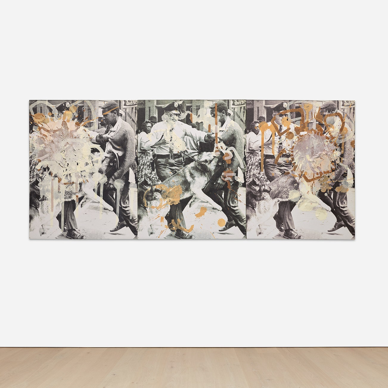 scanned image and silkscreened chocolate on digital print mounted on canvas, in 3 parts