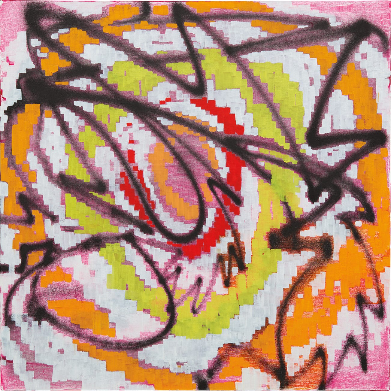 American | 1977Brooklyn-based artist Keltie Ferris is most famous for large-scale paintings covered in layers of spray paint and hand-painted geometric fields. Ferris creates perceptual depth through a distinctive use of light and shapes. His work often gives the illusion of a pixelated landscape though it remains abstract in its final form. While spray paint is typically associated with graffiti or temporary, "on-the-go" artistic practices, Ferris harnesses its dynamism to create stable, highly intricate scenes from combinations of vibrant colors.