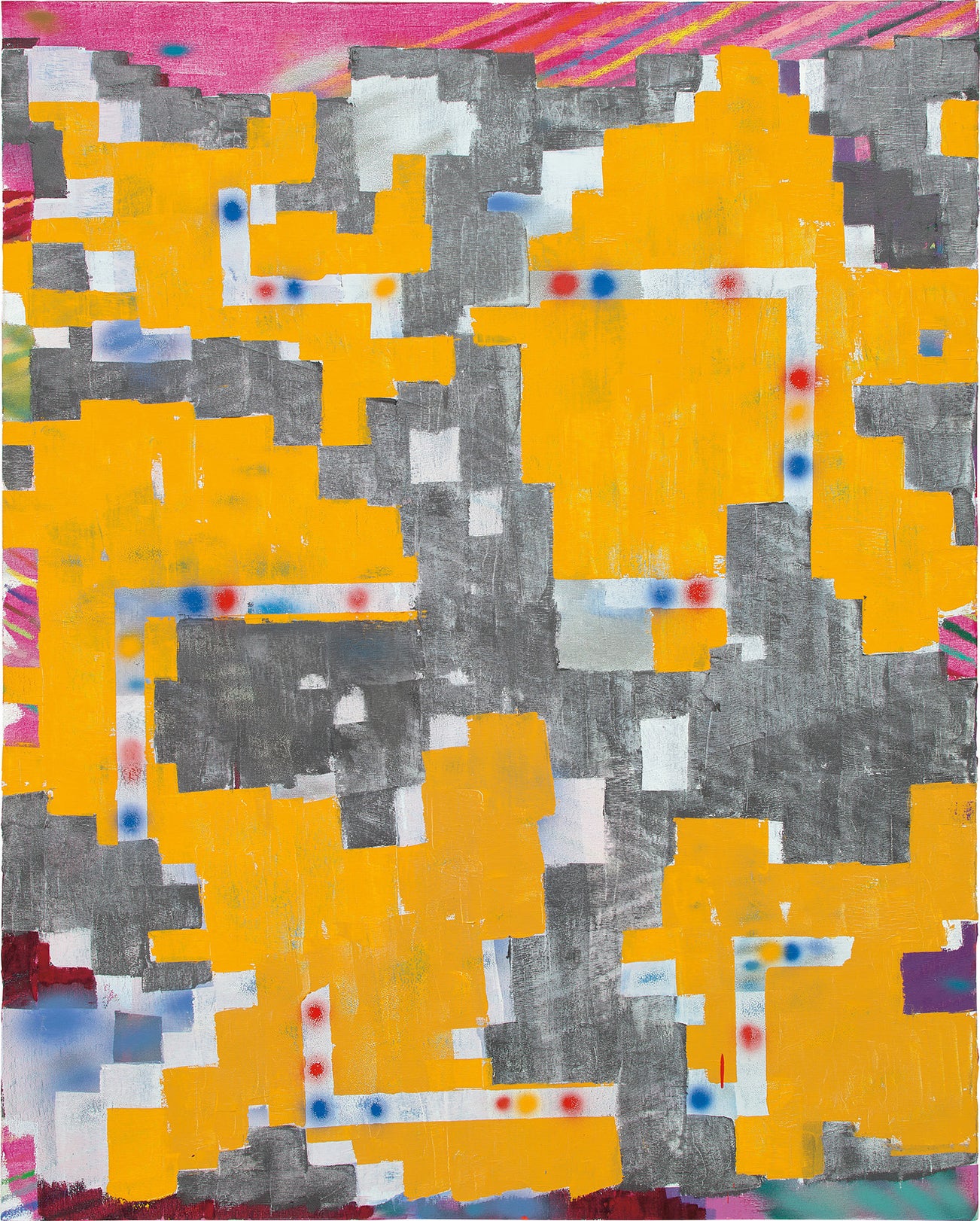 American | 1977Brooklyn-based artist Keltie Ferris is most famous for large-scale paintings covered in layers of spray paint and hand-painted geometric fields. Ferris creates perceptual depth through a distinctive use of light and shapes. His work often gives the illusion of a pixelated landscape though it remains abstract in its final form. While spray paint is typically associated with graffiti or temporary, "on-the-go" artistic practices, Ferris harnesses its dynamism to create stable, highly intricate scenes from combinations of vibrant colors.