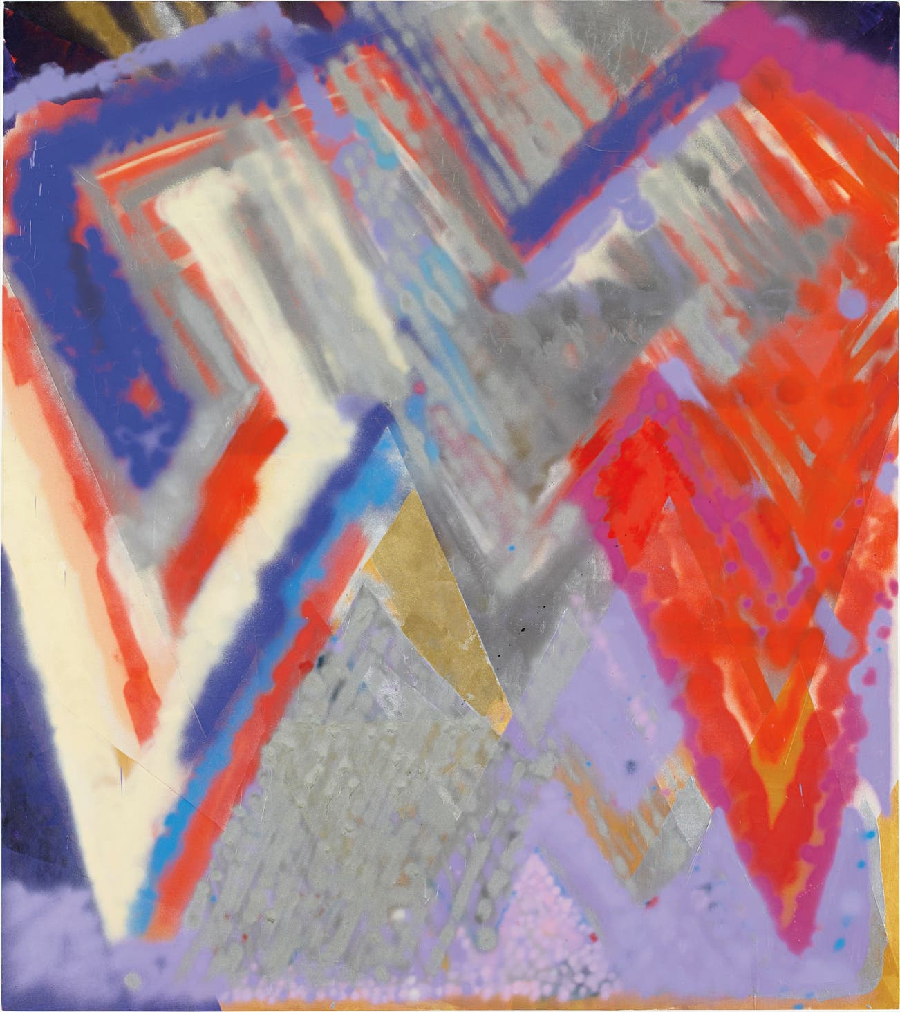 American | 1977Brooklyn-based artist Keltie Ferris is most famous for large-scale paintings covered in layers of spray paint and hand-painted geometric fields. Ferris creates perceptual depth through a distinctive use of light and shapes. His work often gives the illusion of a pixelated landscape though it remains abstract in its final form. While spray paint is typically associated with graffiti or temporary, "on-the-go" artistic practices, Ferris harnesses its dynamism to create stable, highly intricate scenes from combinations of vibrant colors.