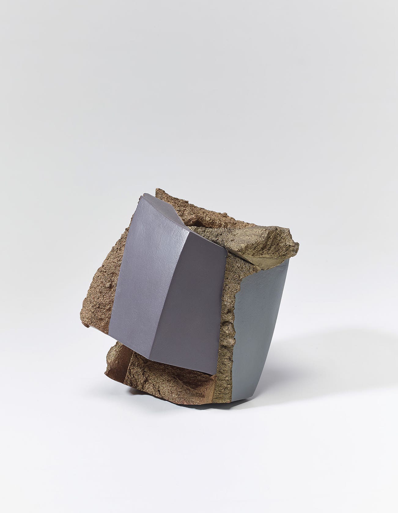 Edo, belongs to a series of sculptures that made their debut at Willard Gallery and Leo Castelli Gallery in New York in 1983. That year Price had relocated with his family to Massachusetts and embarked on a major new phase of his career, moving from glazed ceramics to fired and painted clay. Now fully detached from traditional ceramic techniques, he never looked back. As R. Clayton Baker observed in his review of the Castelli show for Ceramics Monthy, ‘Those looking for stunning ceramic technique won’t find it here, but these works do have a clear, color field/expressionist identity in a style which obviously appeals to the collector with an affinity for paint on canvas. These sculptures have as much relation to Mondrian as they do to Peter Voulkos’ (R. Clayton Baker, ‘Ken Price at Castelli’s’, Ceramics Monthly, January 1984, p. 46). His new technique involved priming his fired ceramic sculptures with over a dozen layers of acrylic paint in rich metallic hues. He created the rough edges, evocative of geological formations, by ripping off bits of drying clay. The Specimen Rocks, as the sculptures are known, are of a diminutive, hand-held scale. Price had custom vitrines made for each work, which only furthered their charm, elevating them like treasures in a curio cabinet. It was a sophisticated pun, burying clay under layers of acrylic paint, only to create sculptures that evoke the mineral composition of earth.