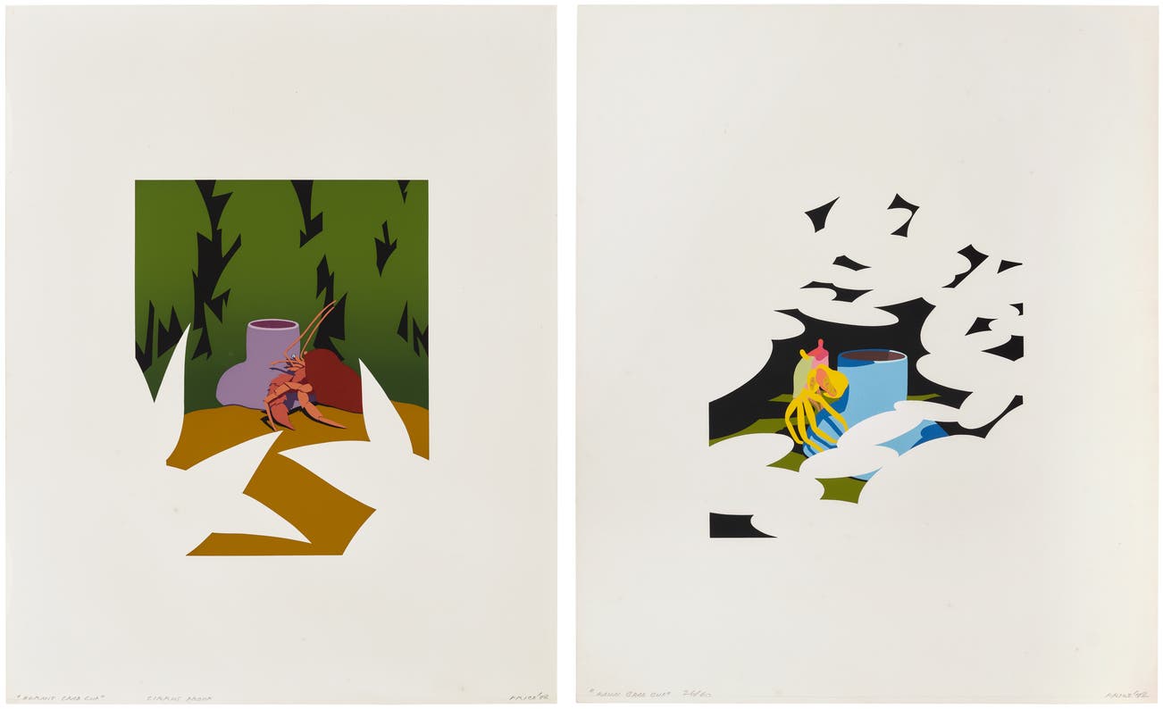 Both signed, titled and dated, Hermit Crab Cup annotated 'Cirrus Proof' and Kuai Crab Cup numbered 26/60 in pencil (a publisher's proof, the edition was 60 and 15 artist's proofs), published by Cirrus Editions, Los Angeles (with their blindstamp), printed in the United States, both framed.