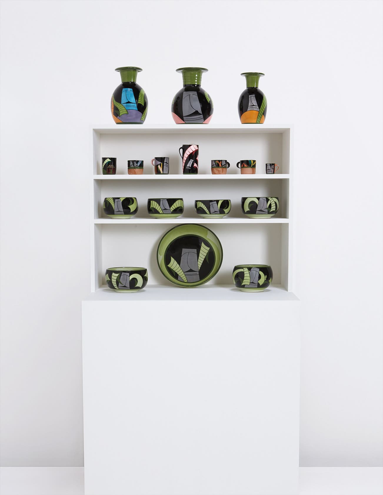 Group of seventeen “Town Wares,” from the “Easter Island” series on a replica “Town Unit,” circa 1977