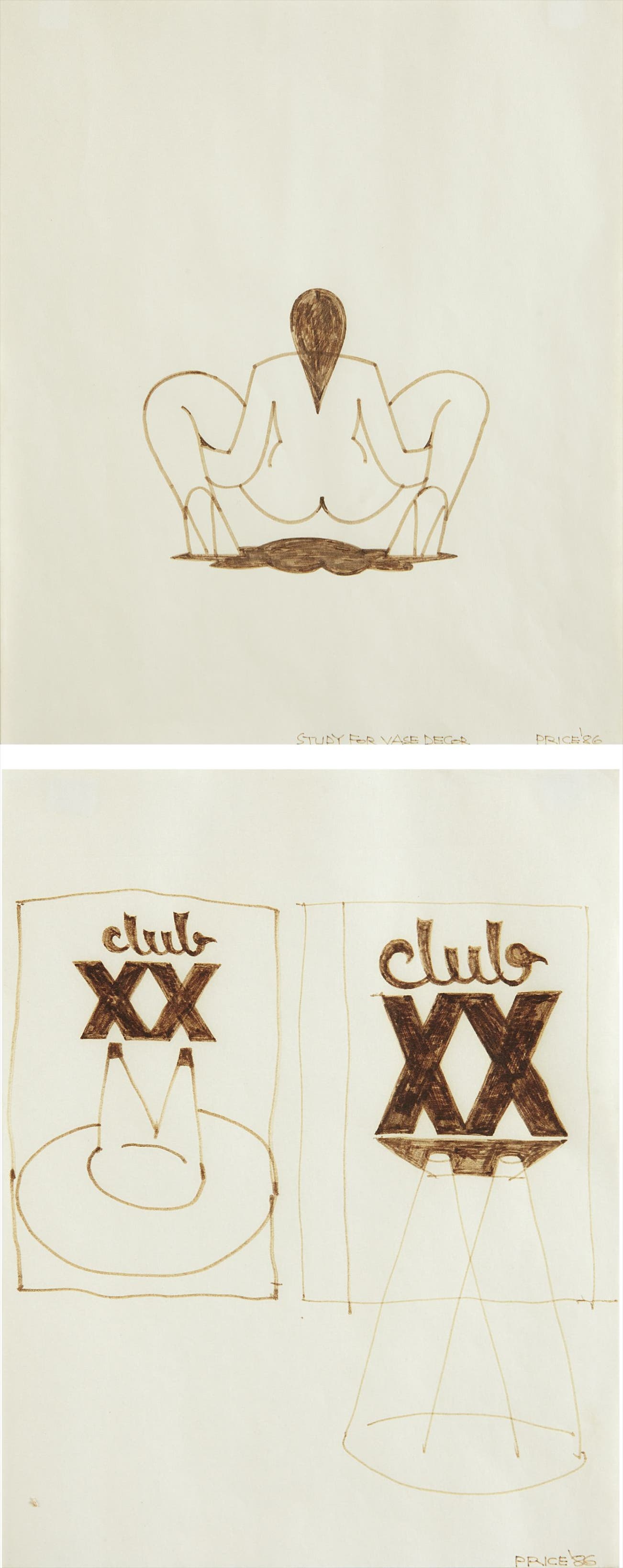 Lower front edge of one image titled in pen with Study for Vase Decor, lower front right edge of each signed and dated PRICE '86.