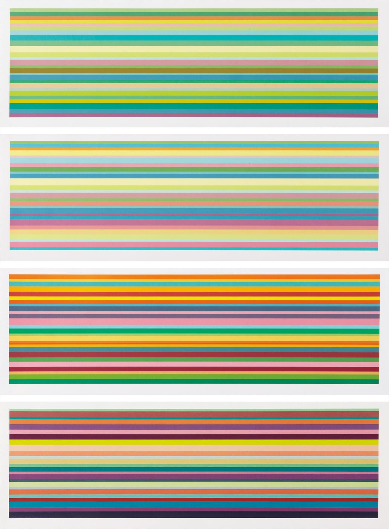 The complete set of four iris prints in colors with screenprint varnish, on Somerset Velvet paper, with full margins,