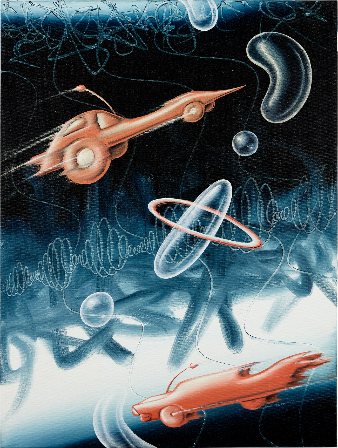 signed, titled, inscribed and dated 'Kenny Scharf '00 travelaire To George - thanx!'