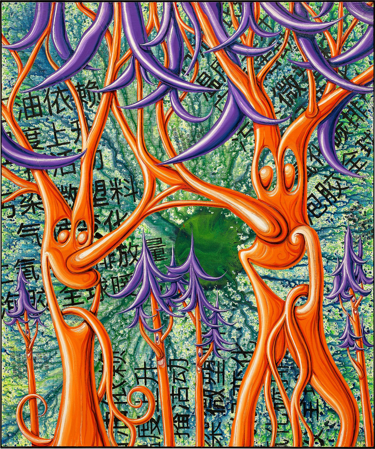 signed, titled, inscribed and dated "Double trees [in simplified Chinese] Shoowangshu Kenny Scharf '21" on the reverse