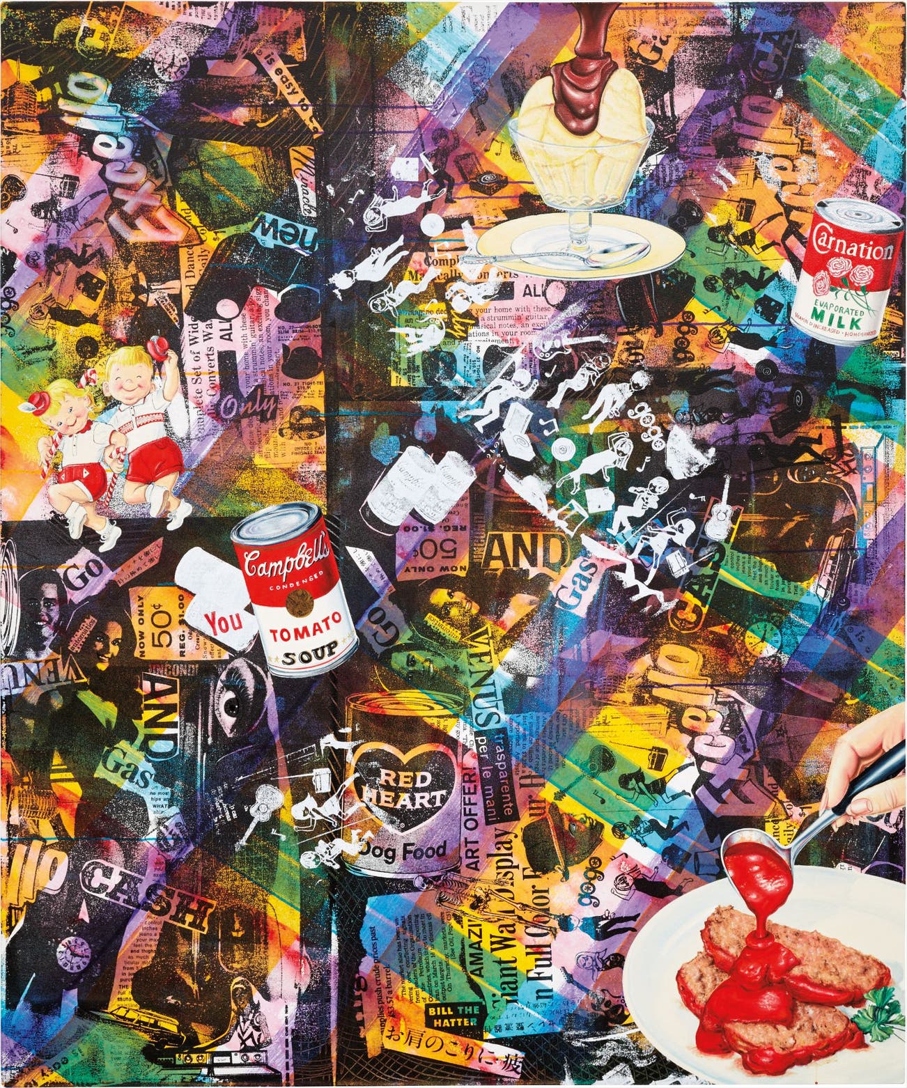 acrylic, oil and silkscreen on canvas