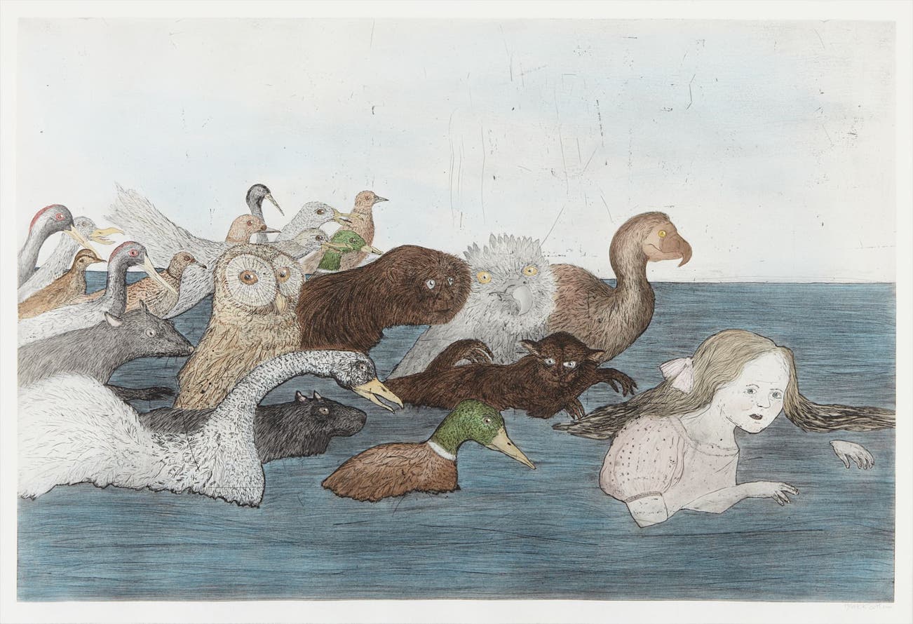 Intaglio with hand-watercoloring, on En Tout Cas paper, with full margins,