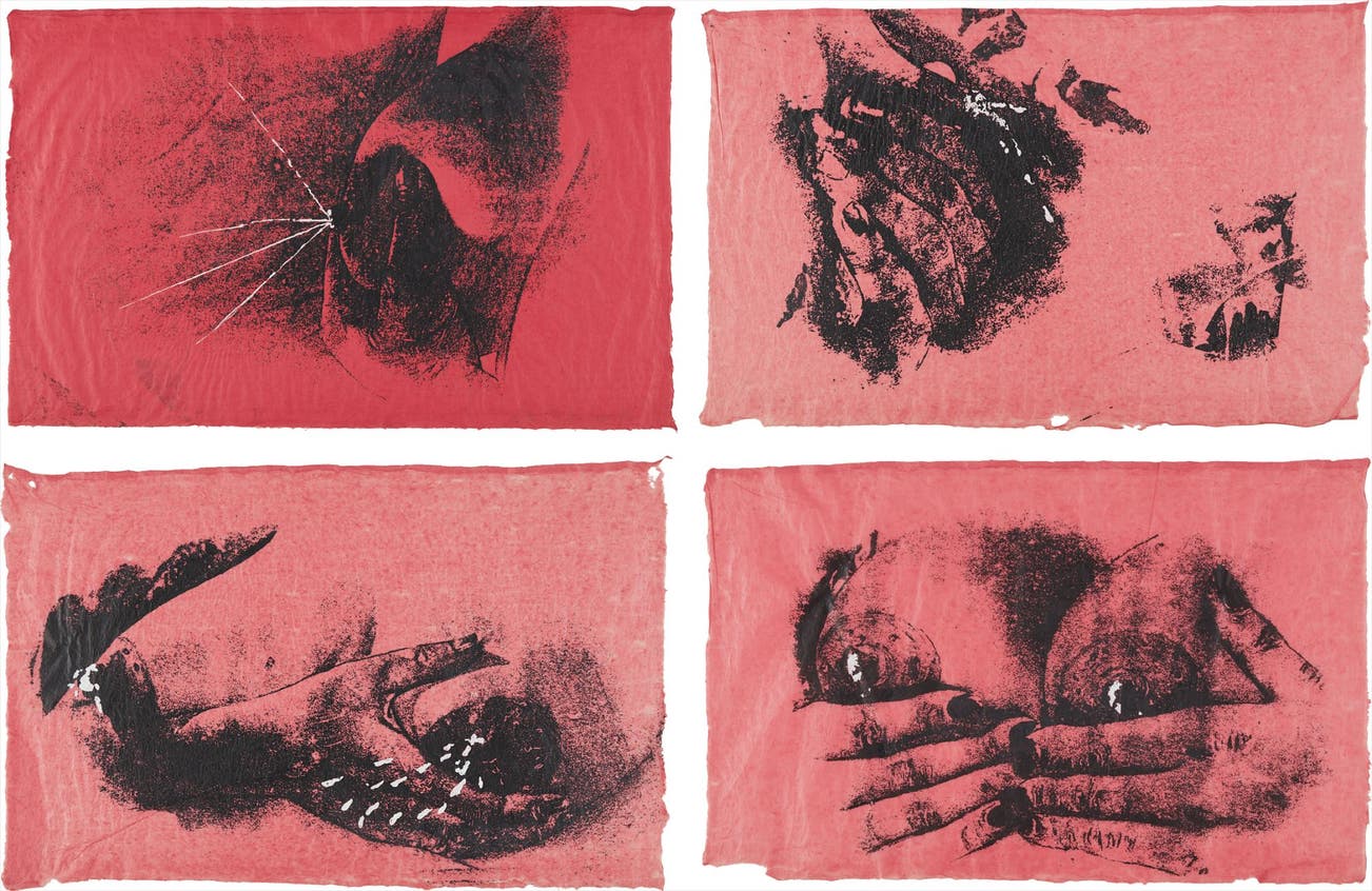 complete set of 4 screenprints with gouache on rice paper