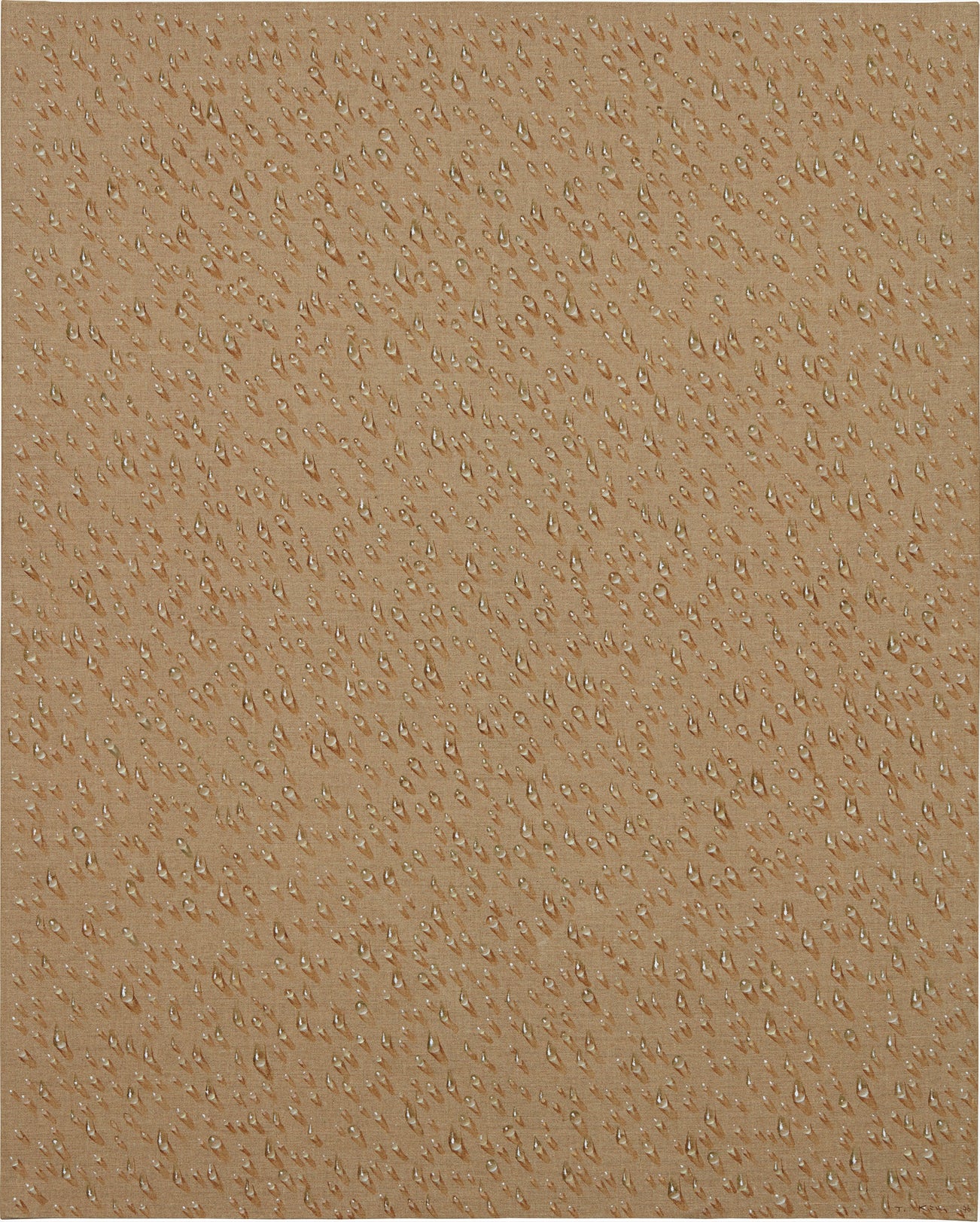 The starkness of the canvas of Gouttes d'eau, 1976 stands in direct opposition to the fluidity of the tactile and pristine water droplets. The illusionistic surface of the present lot reveals a seductive and highly skillful composition. The drops of moisture fall across the painting and provoke the viewer to lean in closer to inspect the hyperrealism and even to spark the desire to touch the surprisingly waterless drops. Each unique drop covers the canvas with spiraling repetition, touching on a link between water and Buddhist concepts of ritualistic purification; merging Western techniques of oil painting with the Eastern philosophy of natural, spiritual elements. As Kim explains, "I see repetition in terms of Buddhist prayer. You repeat and repeat until it blocks out all other thoughts, and you pass into an empty state...in the same way that one sprinkles water to protect the dead from evil spirits during a Buddhist purification ritual." The healing practice of painting for Kim is the dissolution of uneasy memories, and the healing of deep scars, drawing our attention to the fragile yet complex patterns that can be found within nature. While seemingly delicate and transient, these motifs have been rendered by Kim within an arrested temporality, suspended for eternity within an artistic composition that bridges impermanence with resilience.
