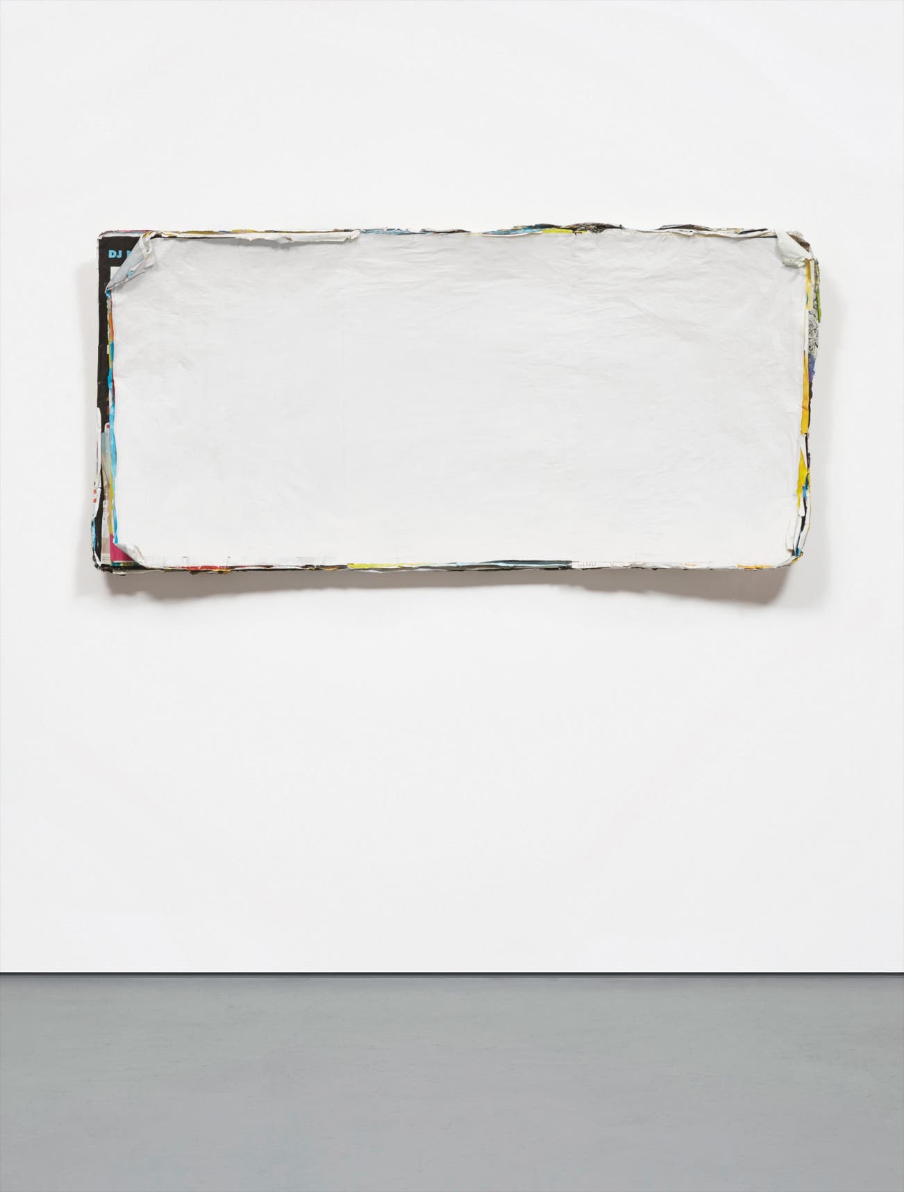 The detritus of an urban landscape lies cloaked under a blanket of pristine white paper in Klara Liden’s Untitled (Poster Painting) from 2010. Bright yellows, faded blues and the frayed edges of jumbled old advertising posters gathered by the artist around various cities are piled one on top of another until the artist’s desired thickness is reached, and then they are then finally silenced by a monochromatic arte povera and minimalism-inspired sheath of calm. “The Poster Paintings archive the advertisements that intersperse, and increasingly encroach upon, urban life. Simultaneously reflecting on the waste inherent in consumerism and on societal values, while harnessing the possibilities of the materials employed, they engage the viewer and ultimately allow for an open-ended dialogue with the work” (Vaari Claffey, Rachael Thomas and Karen Sweeney, exh. cat., Irish Museum of Modern Art, Dublin Klara Liden: The Myth of Progress, 2013-14). Like Andy Warhol and other pop, appropriation, and even conceptual artists before her, Liden has found a way to reinvent the re-purposing of pop culture items into a refreshing and hauntingly beautiful reminder of the undercurrent of rebellion and gross consumption of our culture today. Untitled (Poster Painting) is at once a souvenir of our past, but also a gentle reminder that the future is a blank canvas.