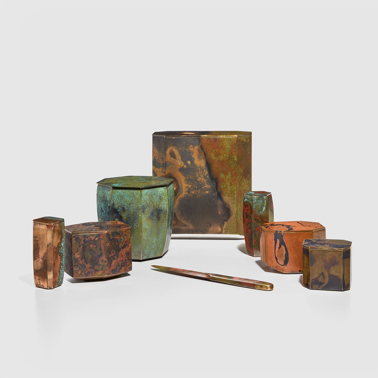 Group of seven boxes and letter opener