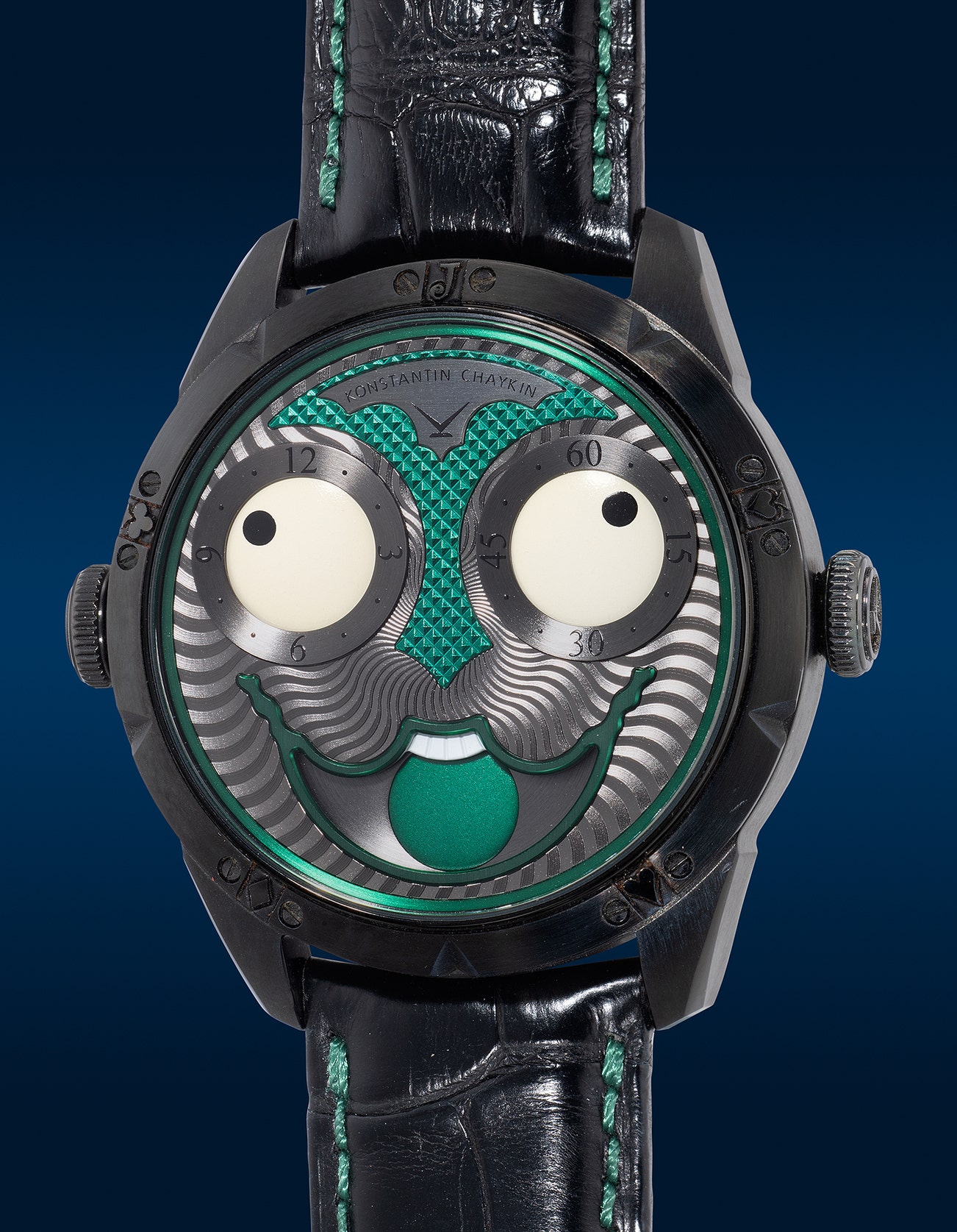 - Chaykin's poetic compositions of mechanical precision and fanciful design have become his signature. The "Joker" enthralled with its two-disc module displaying the hours and minutes in the Joker's expressive eyes, while his smiling mouth indicated the moonphase.