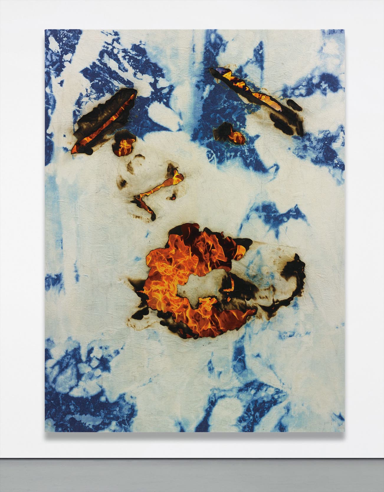 acrylic and inkjet print on denim laid down on canvas