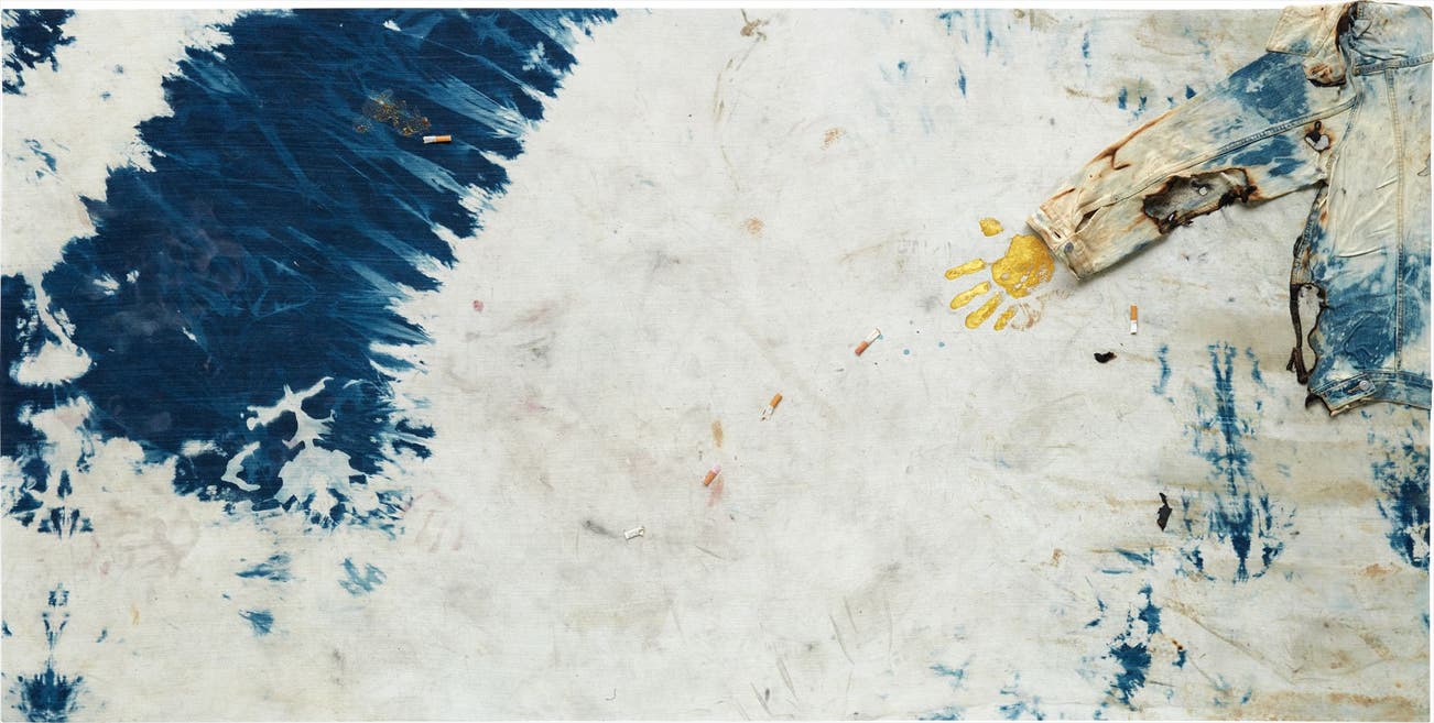 burnt bleached denim, cigarettes and gold foil