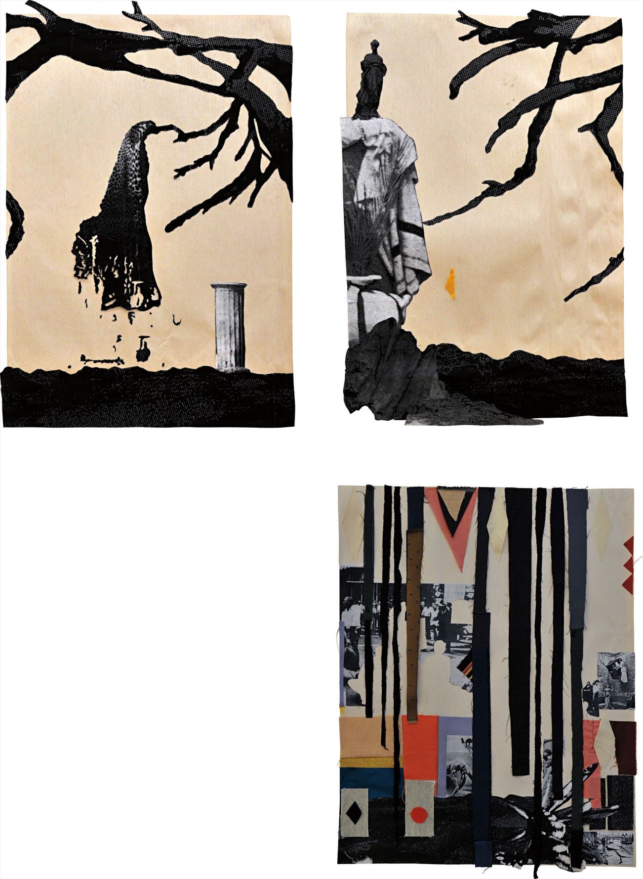 collage with fabric, photocopies on wallpaper (in 3 parts)