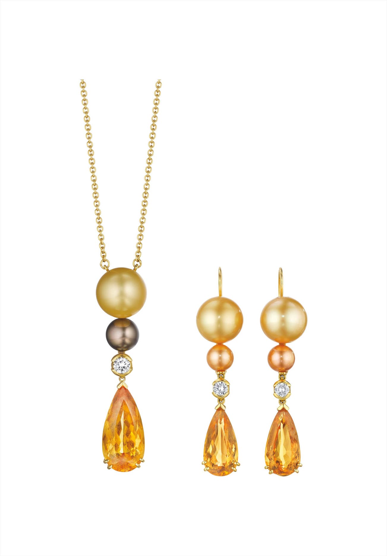 An Imperial Topaz, Cultured Pearl and Diamond Suite