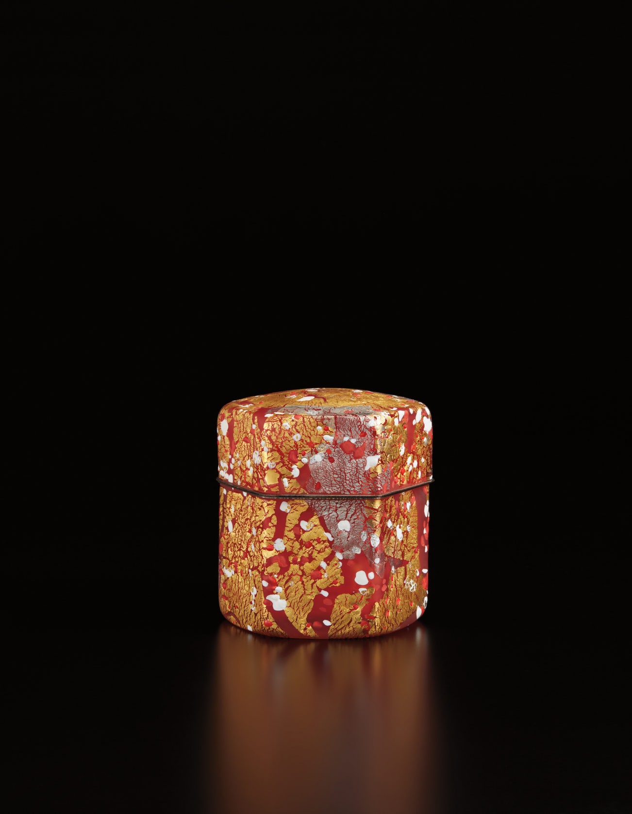 Blown glass with gold and silver leaf, silver-plated metal.