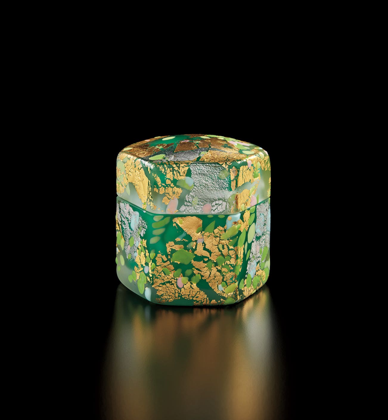 Blown glass with gold leaf.