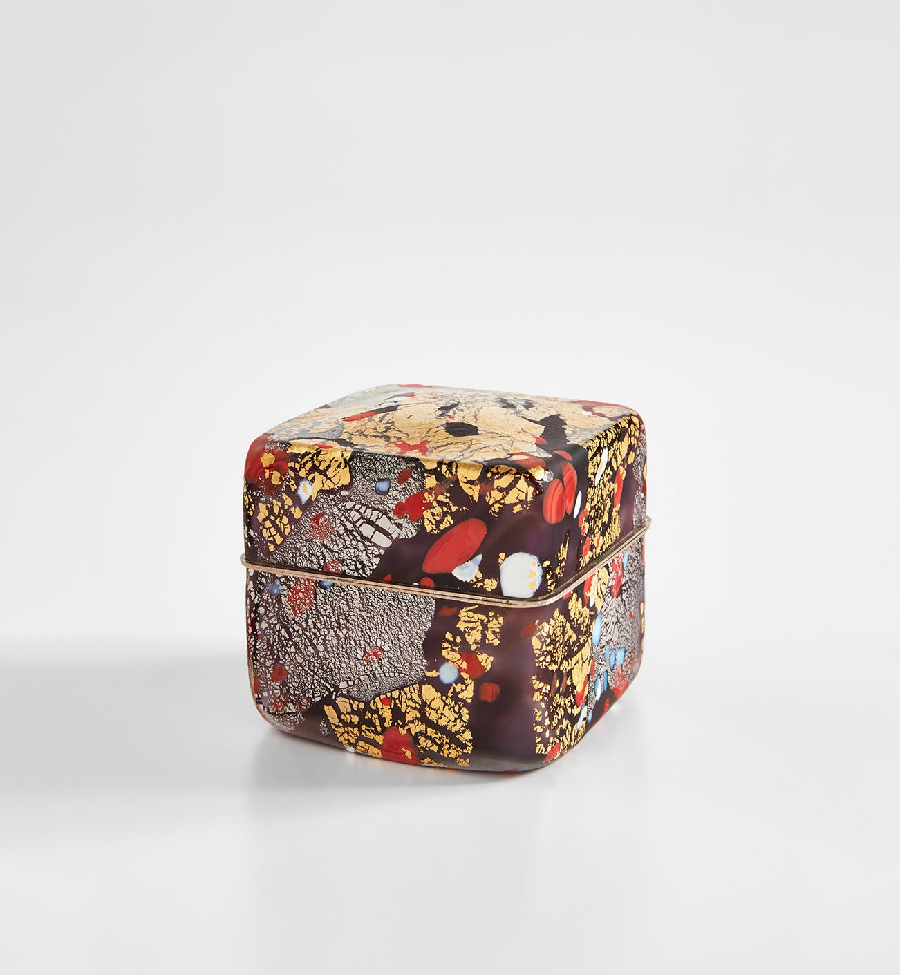 Blown glass with gold and silver leaf, silver-plated metal.