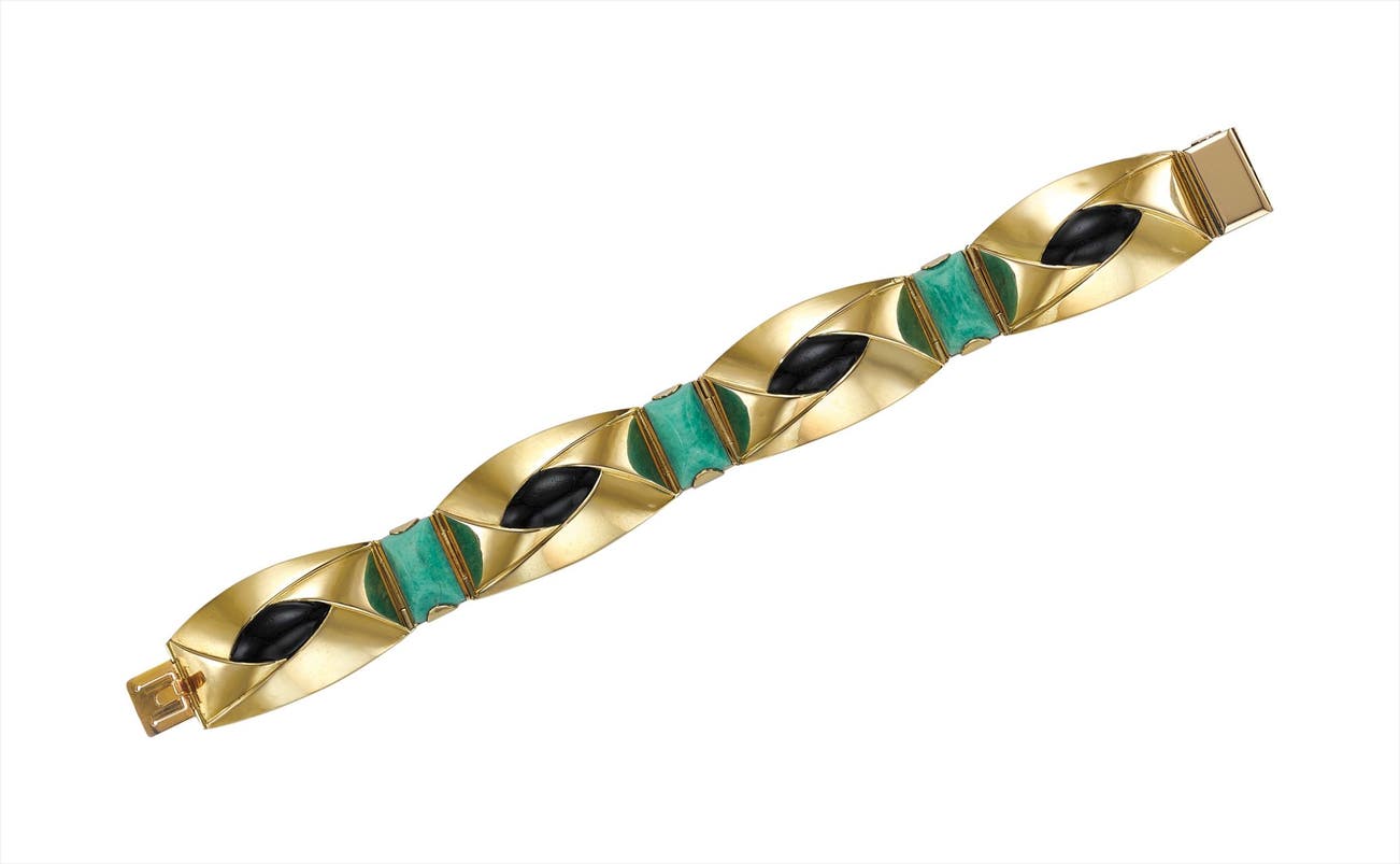 A Gold, Jade, and Enamel Bracelet