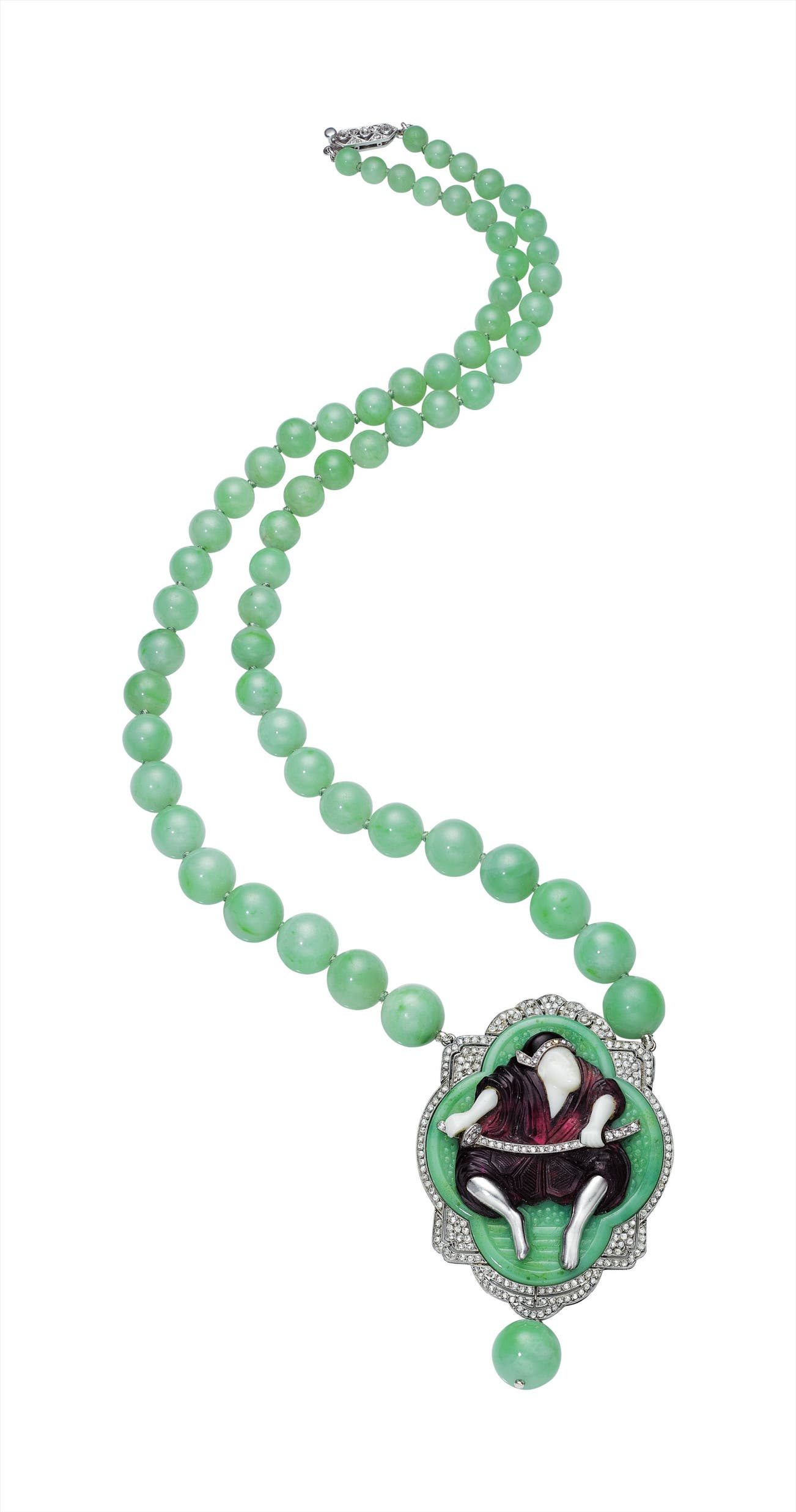 A Jade, Diamond, Glass and Gem-Set Pendant Necklace
