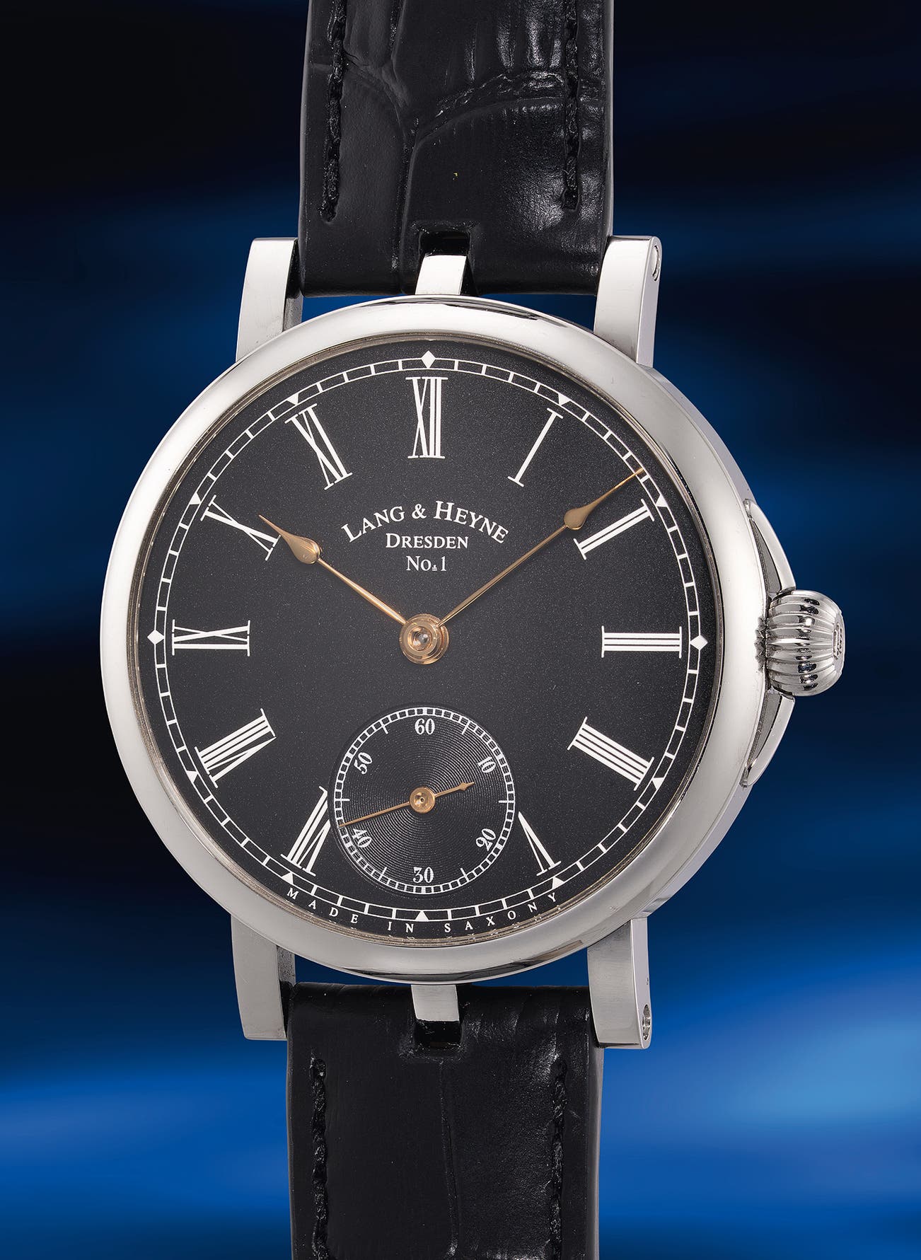 The present example numbered 1 was crafted during Marco Lang’s tenure at the company, prior to his departure in 2019, adding further significance to its provenance. It is offered in well-preserved condition, along with its full set of accessories, and is complemented by its original black crocodile strap, which enhances the overall sophistication and harmony of the design. With its historical depth, refined craftsmanship and rare configuration, this timepiece stands as a compelling example of Lang & Heyne’s dedication to tradition and excellence.