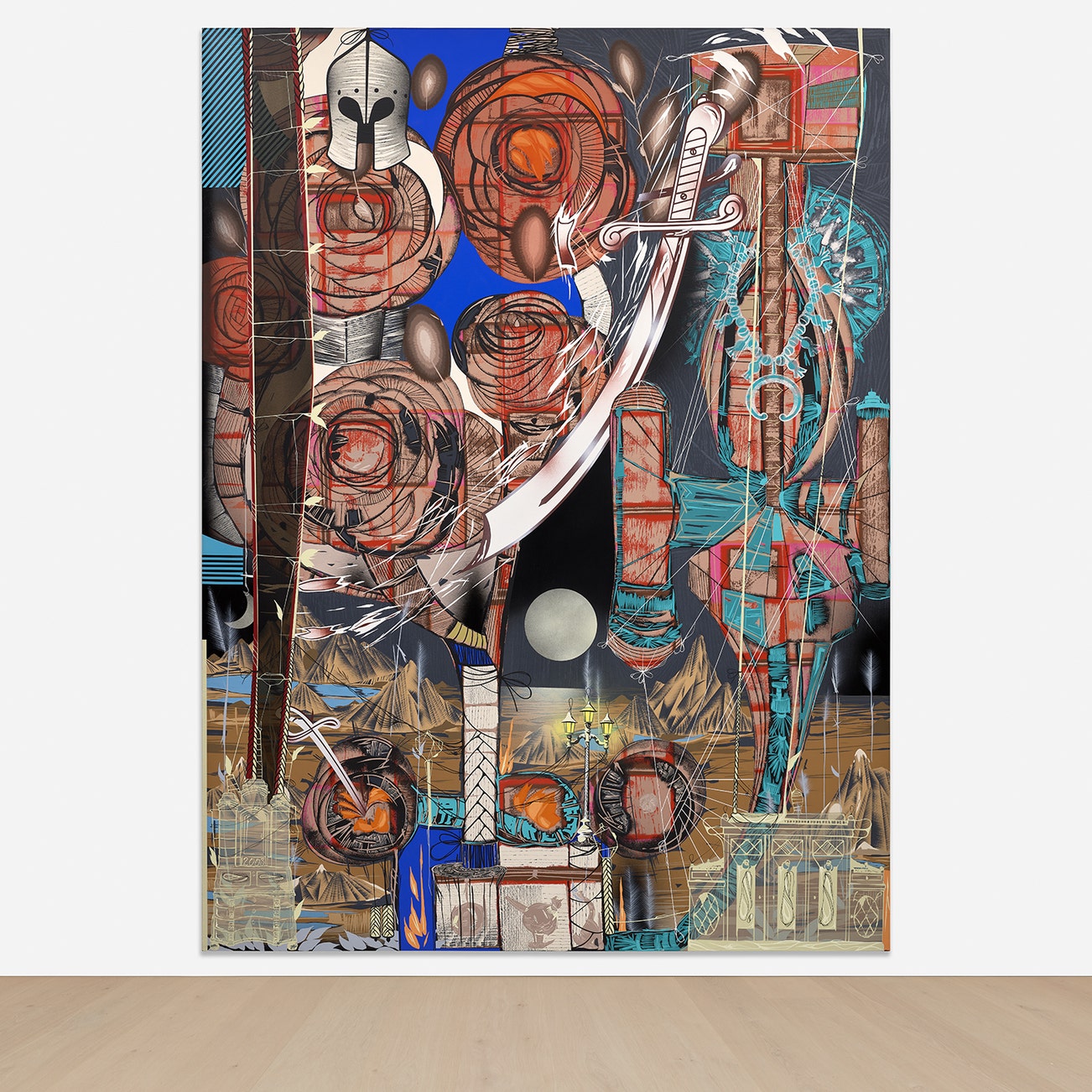 matte oil, aerosol lacquer and cel-vinyl on gessoed canvas over wood panel