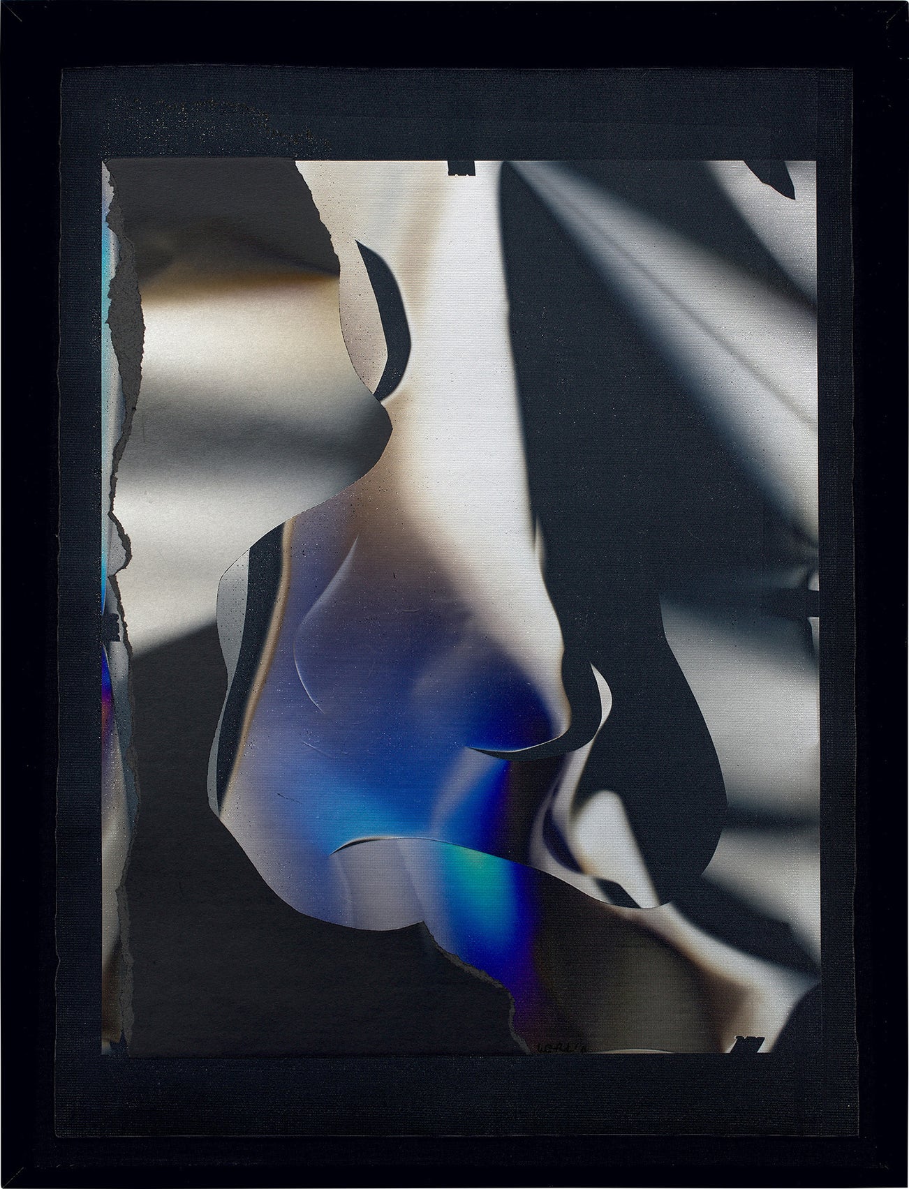 vaporized aluminum and silicon monoxide on canvas paper, in artist's frame