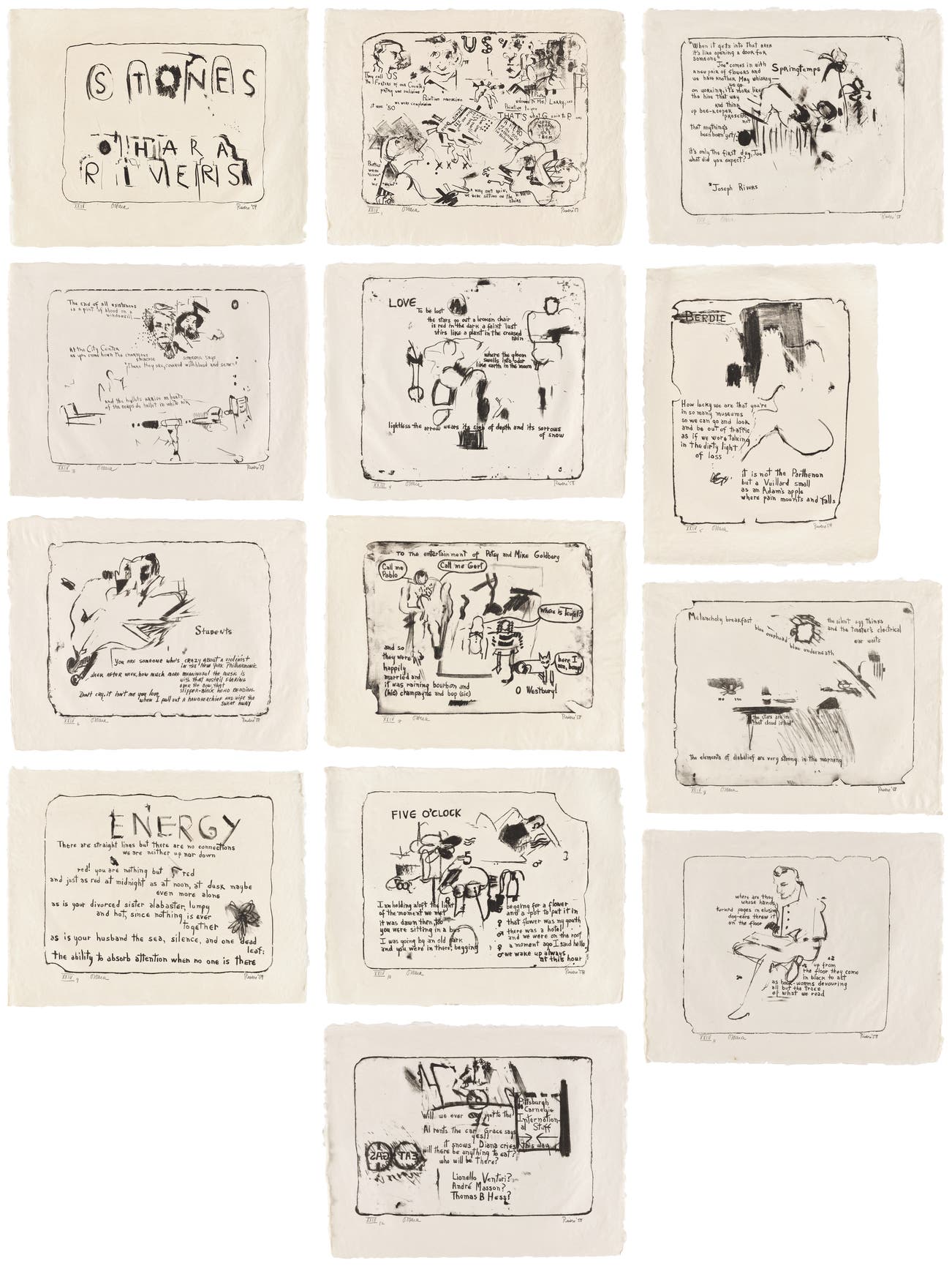 The complete set of 13 lithographs, including the title page, on pure linen rag paper, with full margins, poetry by Frank O'Hara, with accompanying colophon and original outer paper folder.